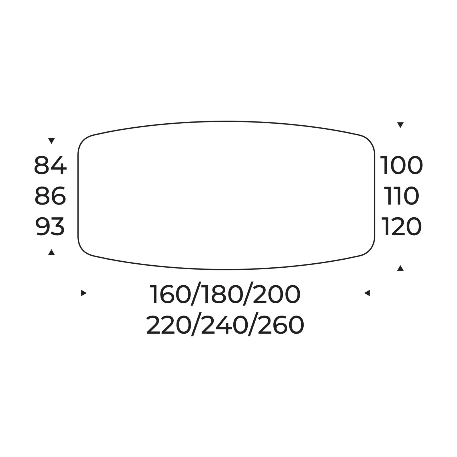 - 220x100 cm (+2x50 cm extendable)