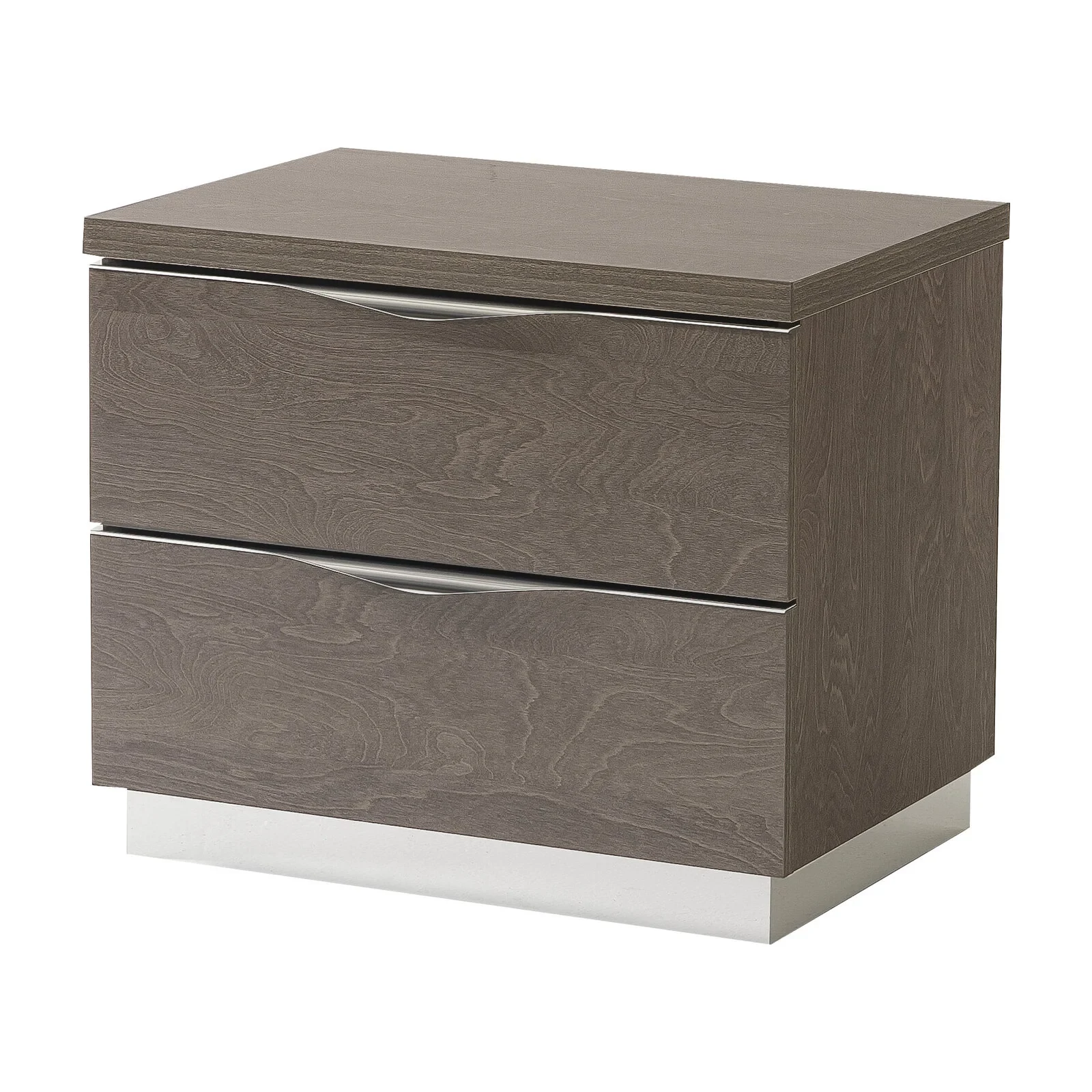 A minimalist modern night table in birch or silver birch finish. Its compact design and high-quality craftsmanship perfectly complement the functional aesthetics of contemporary bedrooms. Provides practical storage with sleek handles for an elegant touch.