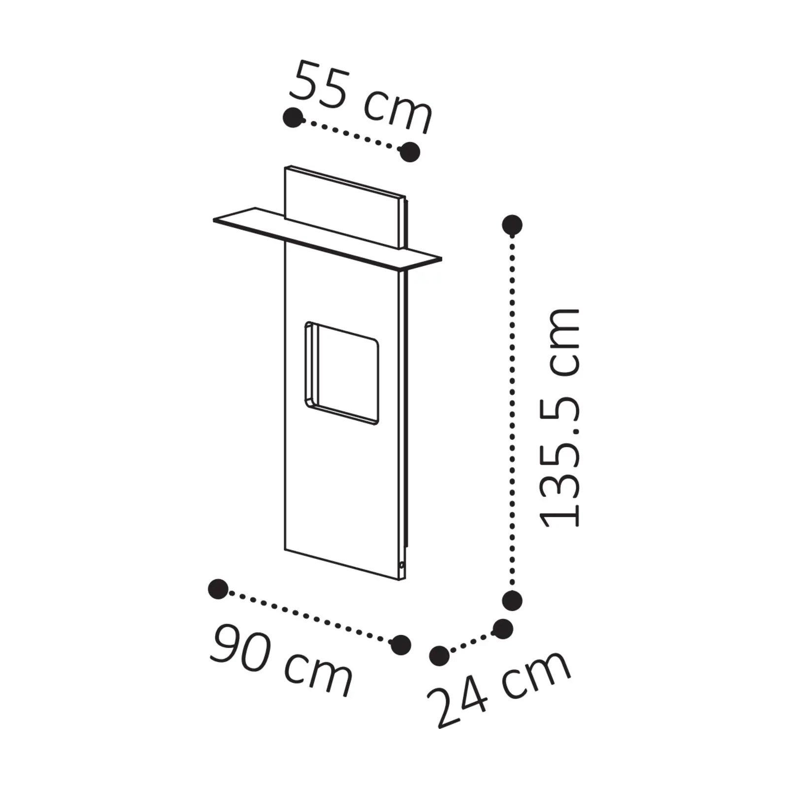 18mm thick MDF (Medium Density Fiberboard) panels foiled in black thermoplastic veneer on internal side and chrome-mirror veneer on external side.
