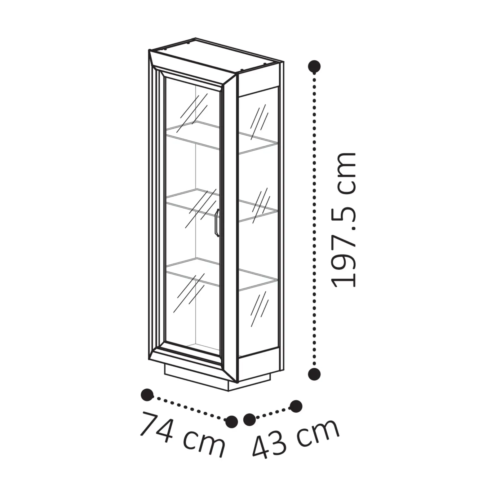 1 door vitrine glass shelf: 1 x 120mm stainless steel profile with LED light (0.6W low consumption - 3000 Kelvin warm light).