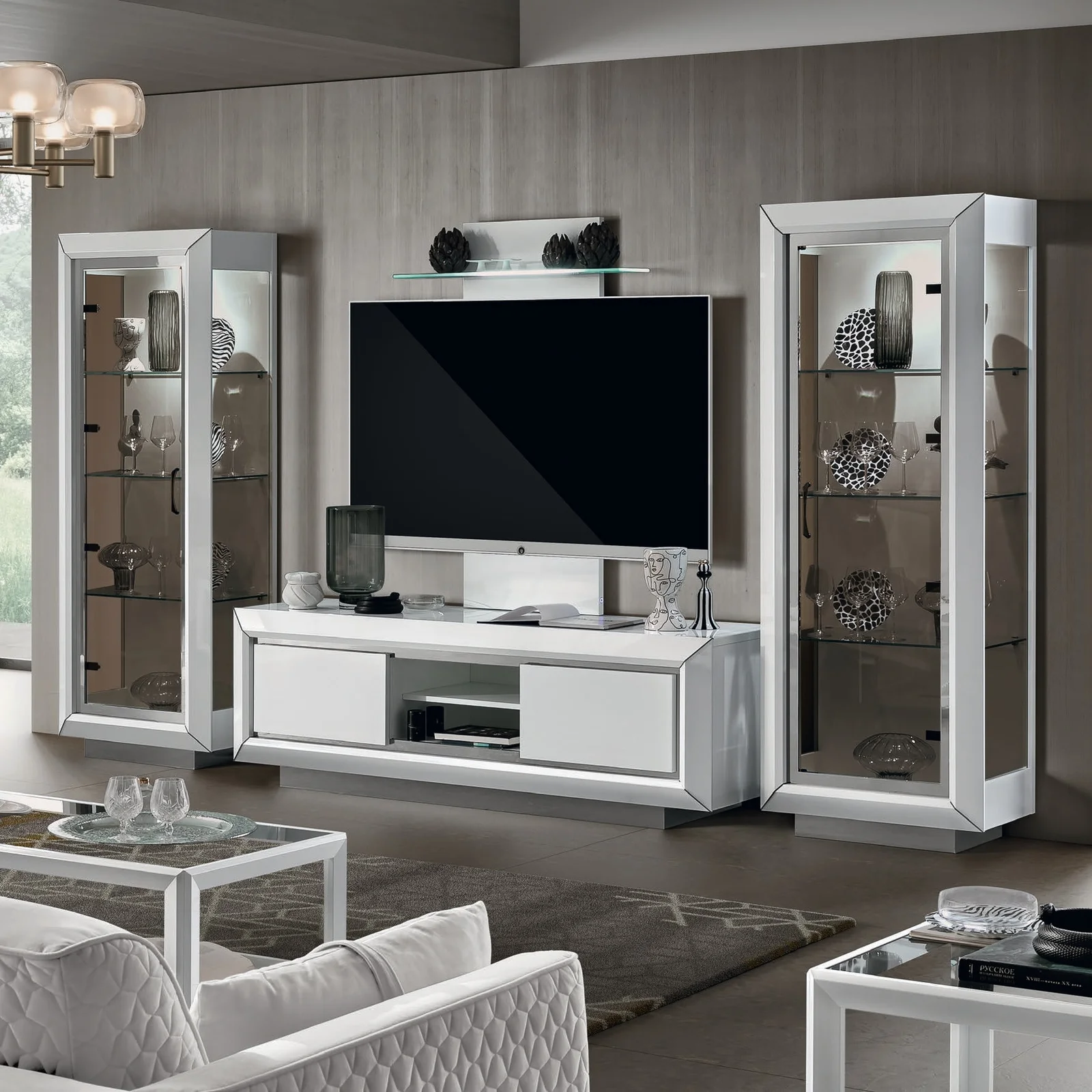CamelGroup Elite Day Modern White TV Cabinet Set (TV Cabinet + Wall Panel + 2x 1-Door Display Cabinet)