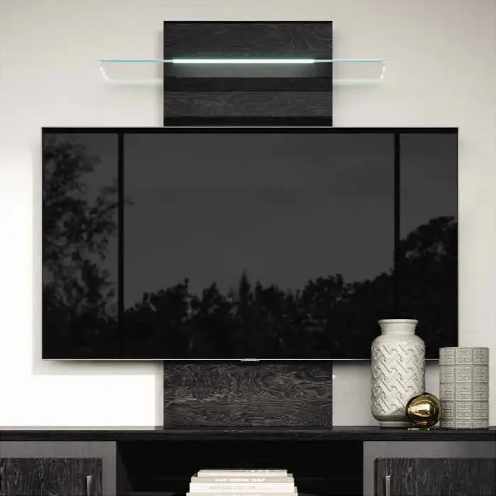 Organize your entertainment area with the Krystal TV wall panel featuring integrated LED lighting and a glass shelf. A perfect blend of style and convenience for modern homes.