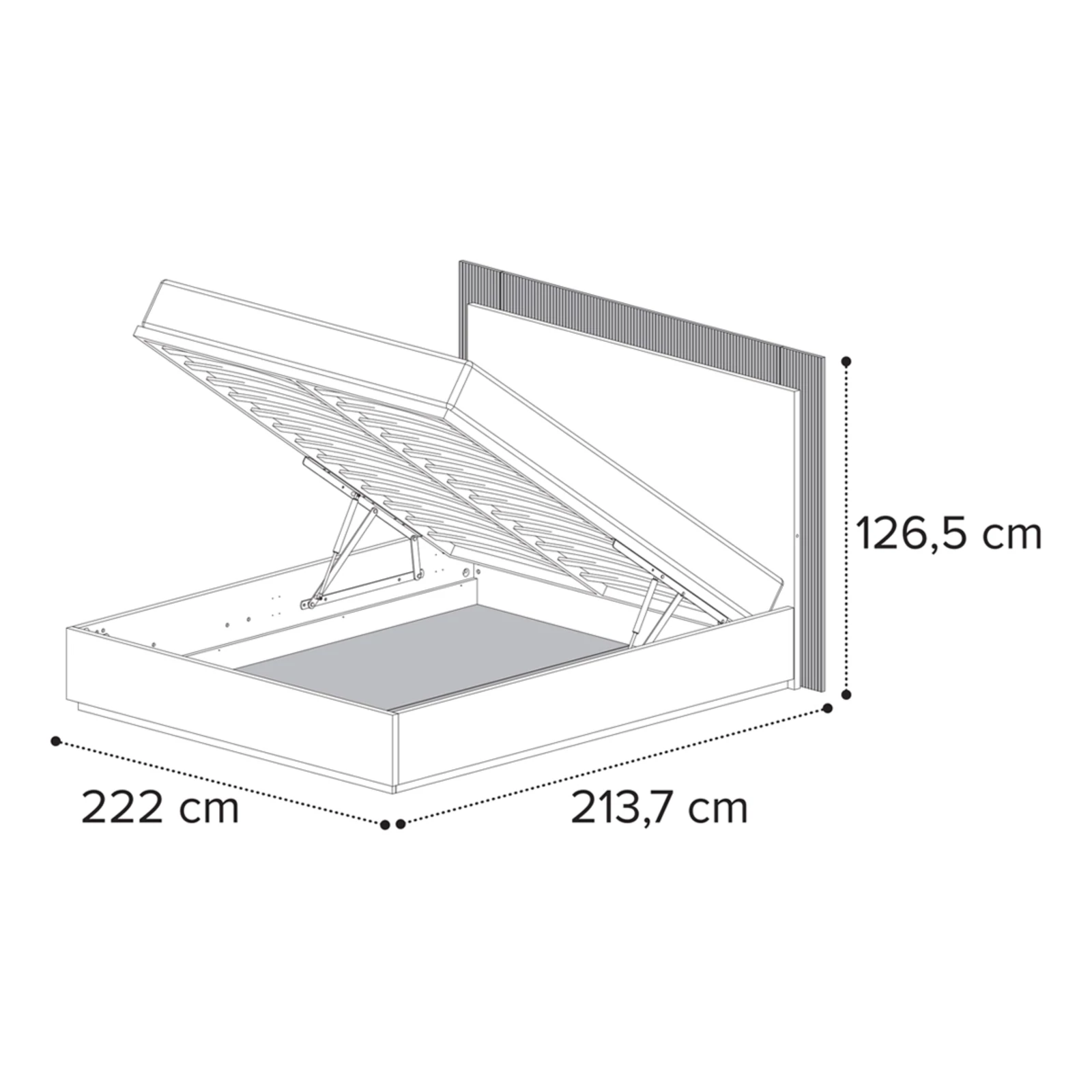 - 160x200 cm version: 186,8×213,7×126,5 cm