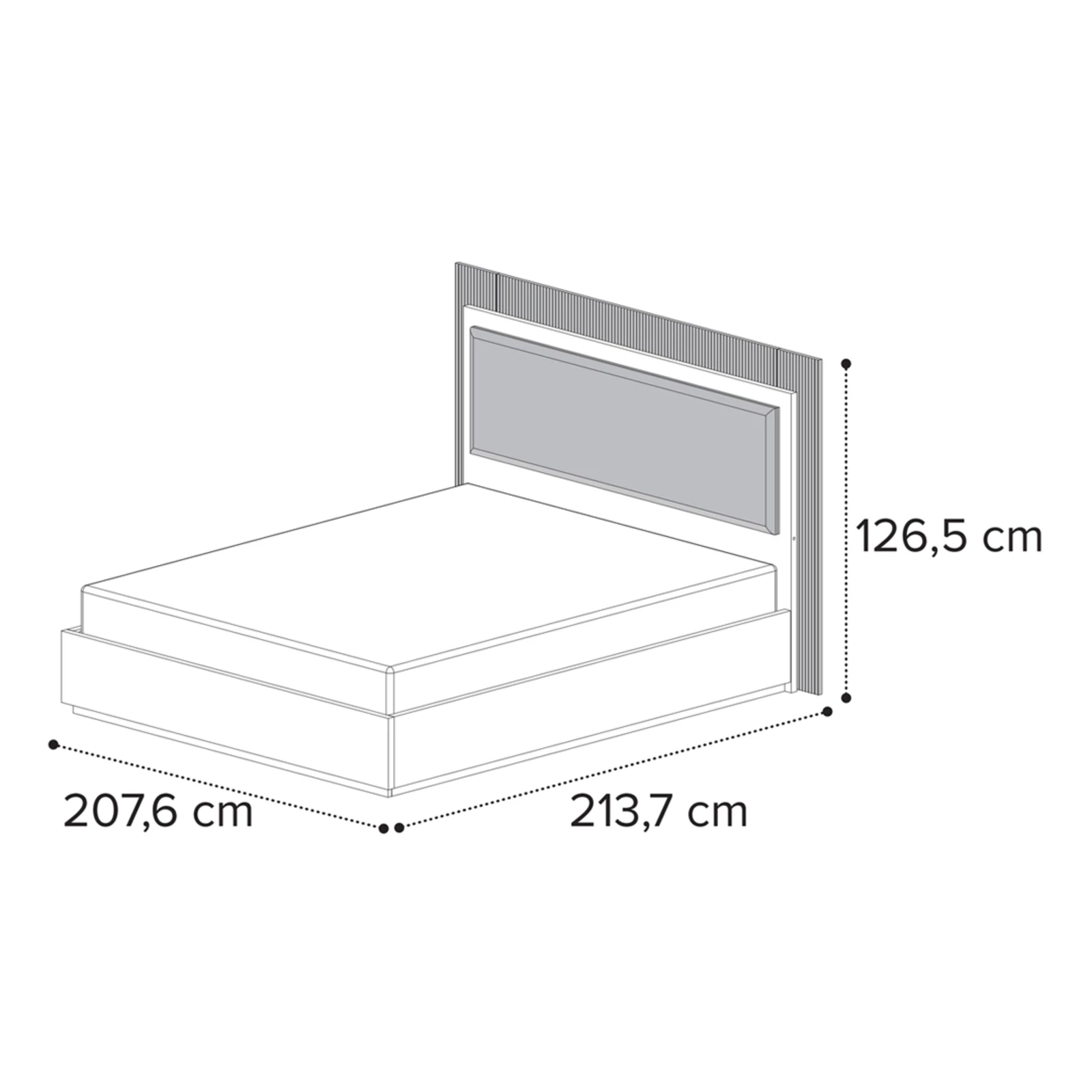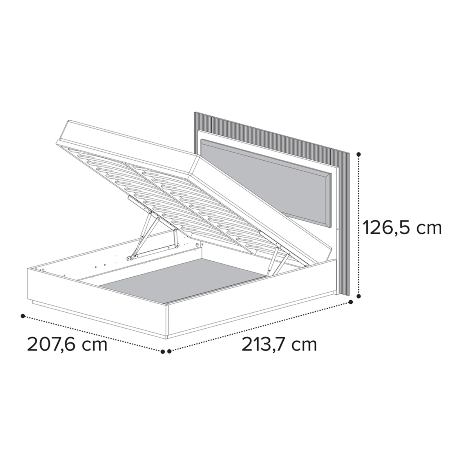 - 180x200 cm version: 207,6×213,7×126,5 cm