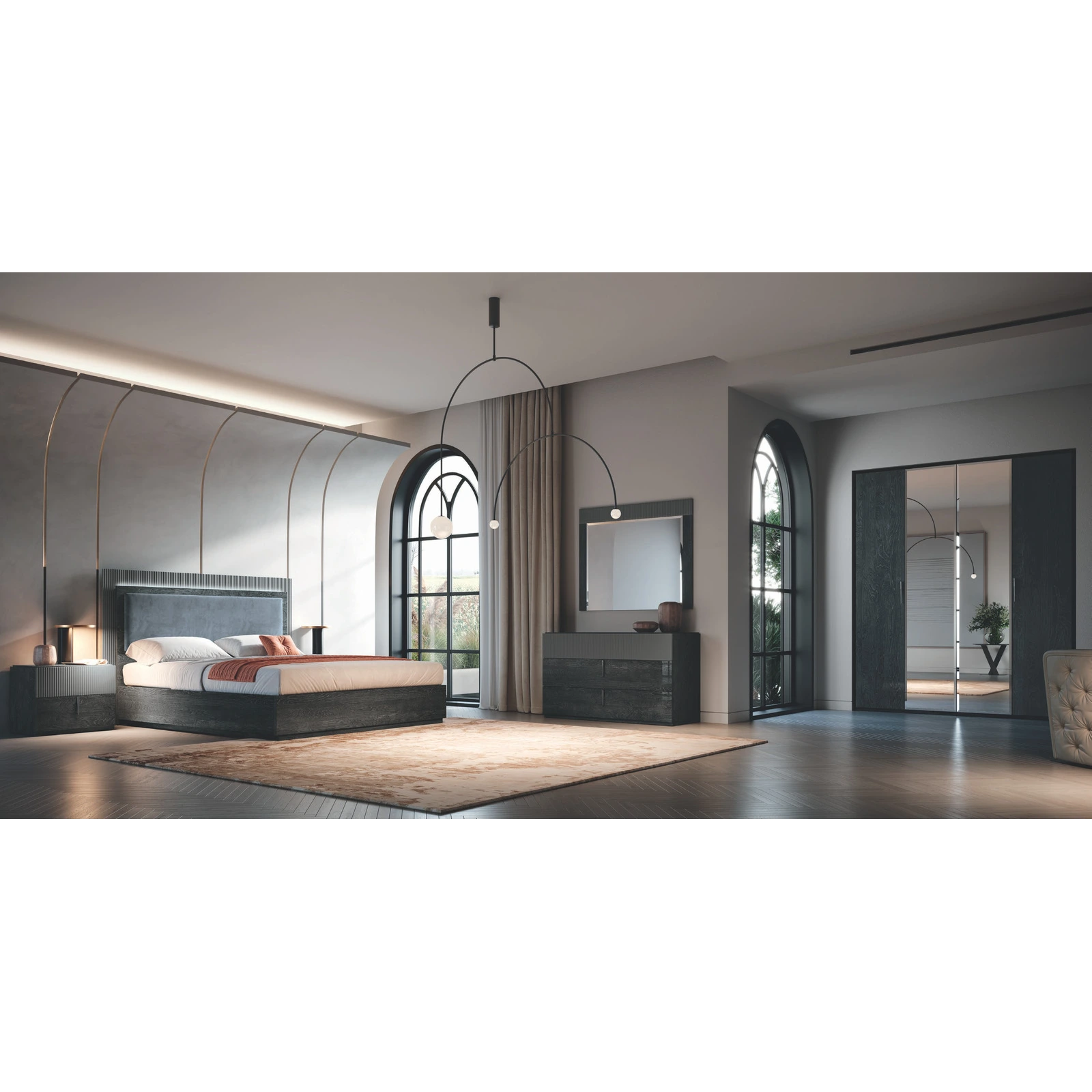 Black Bedroom Set with 160x200 cm Bed and 6 Doors Wardrobe – CA Onyx