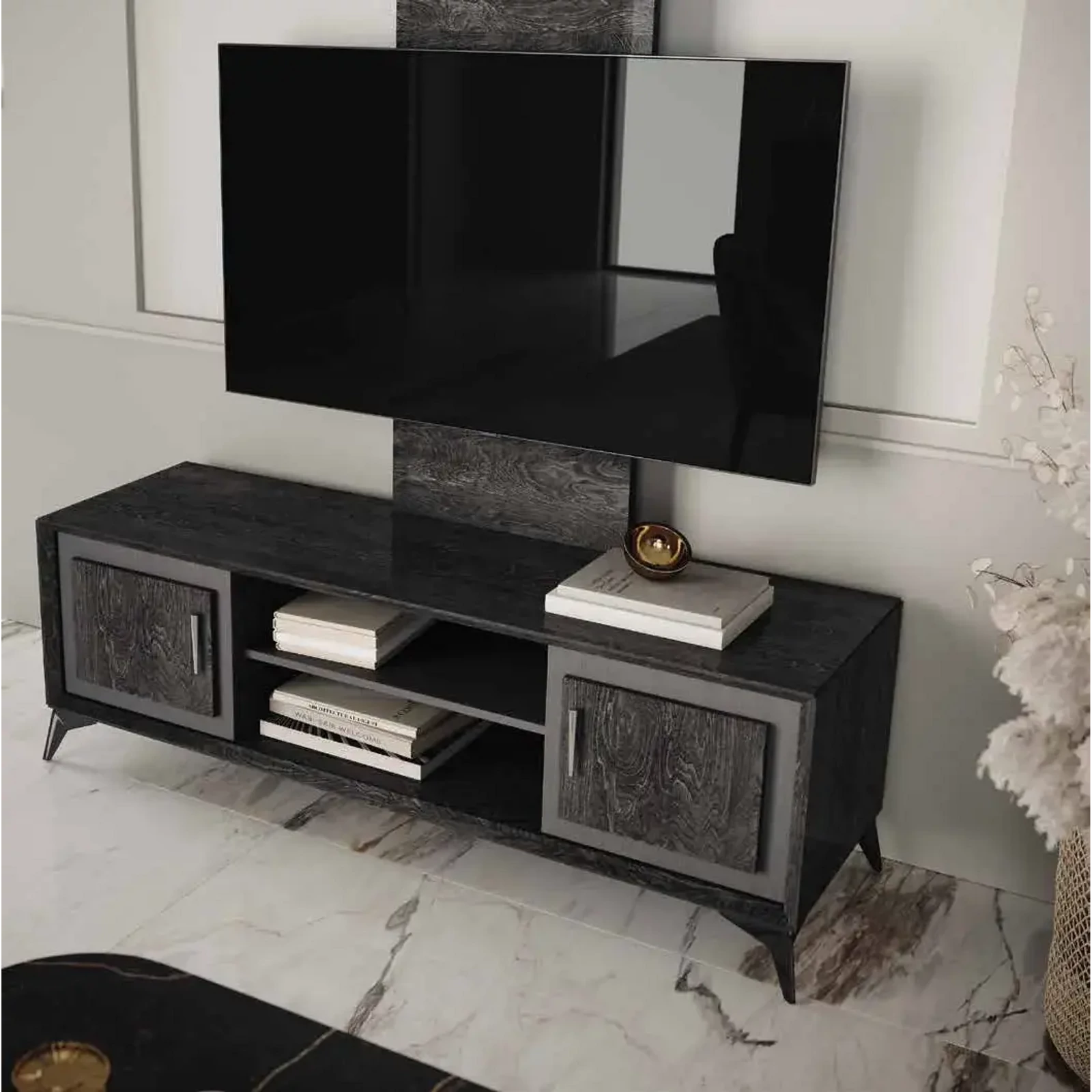 This Krystal TV cabinet and wall panel set combines Italian design with functional elegance. The TV wall panel features a glass shelf and integrated LED lighting, while the TV cabinet includes soft-close hinges and unique finishes, creating a sleek, cohesive look for contemporary living rooms.