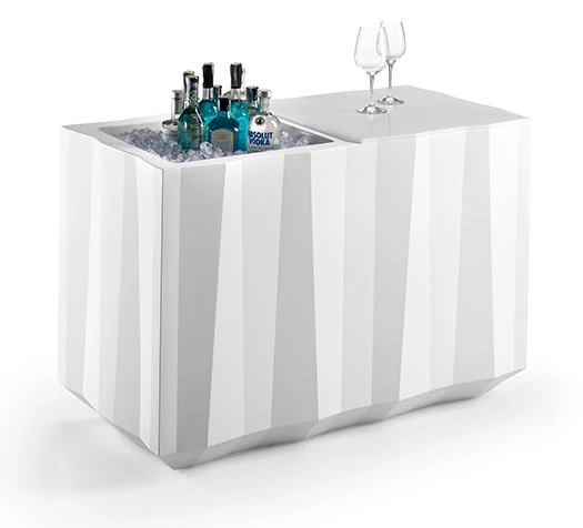 An ice container with the facets of the Frozen family. This Catering Counter also provides a useful top surface which can be customized in size. Luminous version also available.