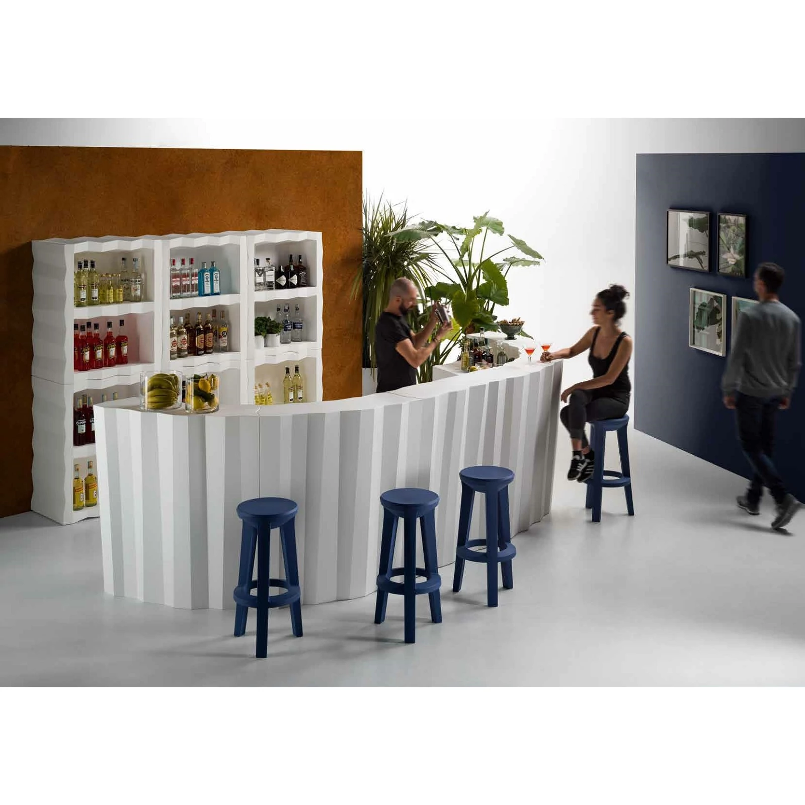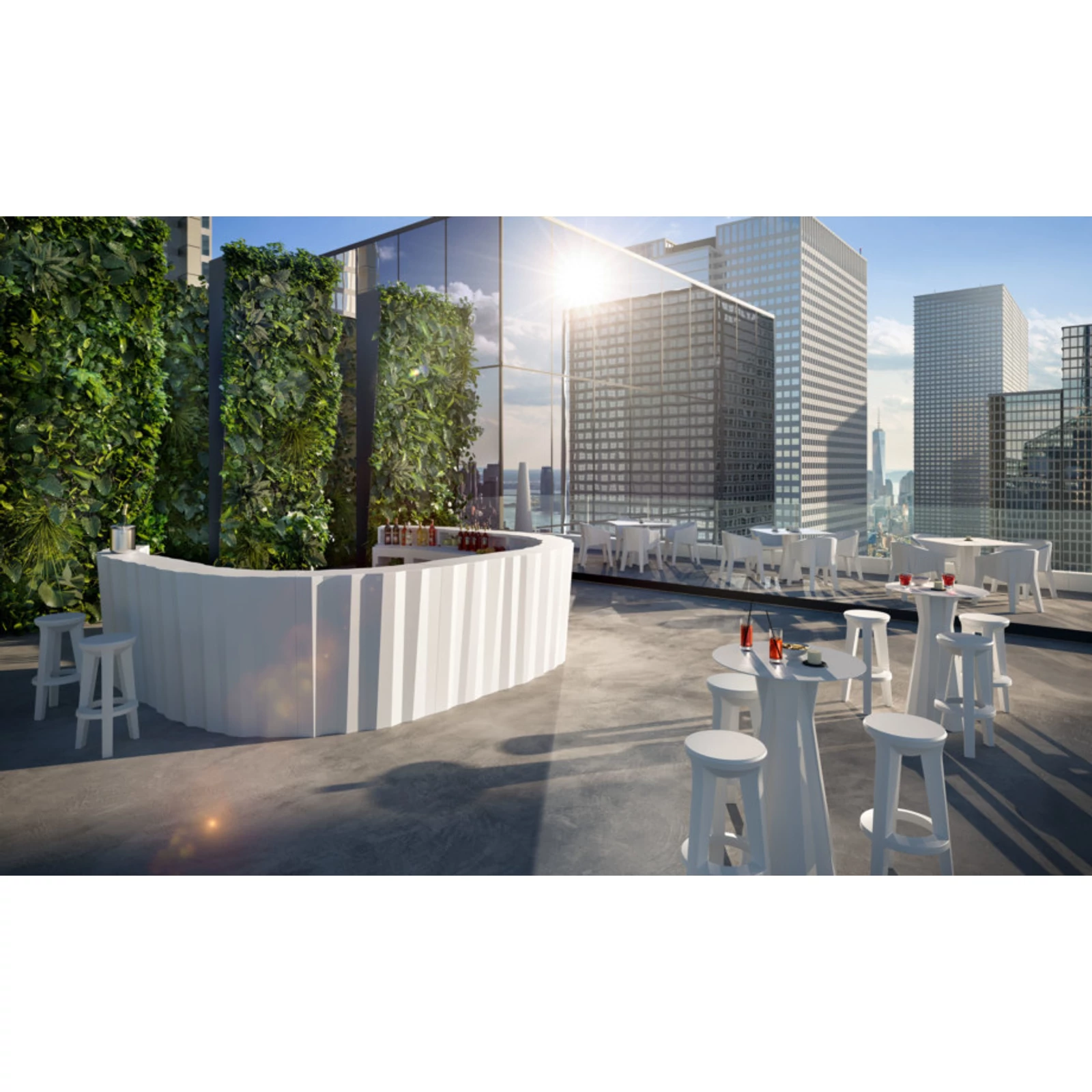 Bar stool for both indoor and outdoor use. It can be paired with high tables and bar counters. This solid and functional stool is comfortable, versatile, and easy to move.