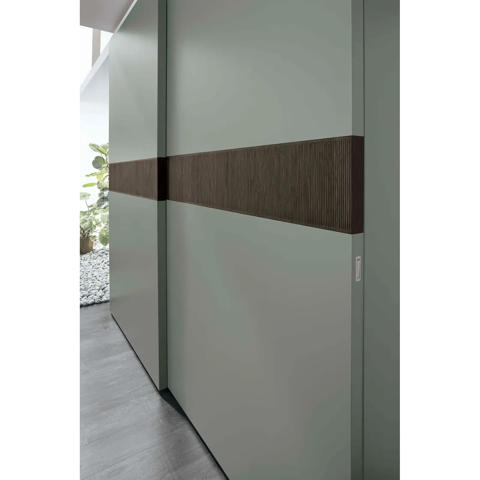 The Frame wardrobe is a modern sliding-door wardrobe characterized by the elegance of Italian design and practical solutions. Its hallmark is the central horizontal panel, available in multiple finishes and colors, allowing the wardrobe to perfectly harmonize with your bedroom. The sturdy, thick doors provide a solid and durable structure while ensuring smooth operation and easy, seamless use.