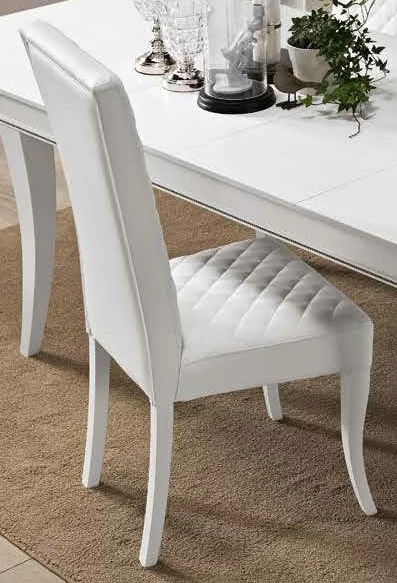The table with refined and simple lines is highlighted by the uniquely comfortable, softly stitched armchairs that surround it. The cabinet and the showcase have more classic tones, but both fit perfectly with more modern furniture.
