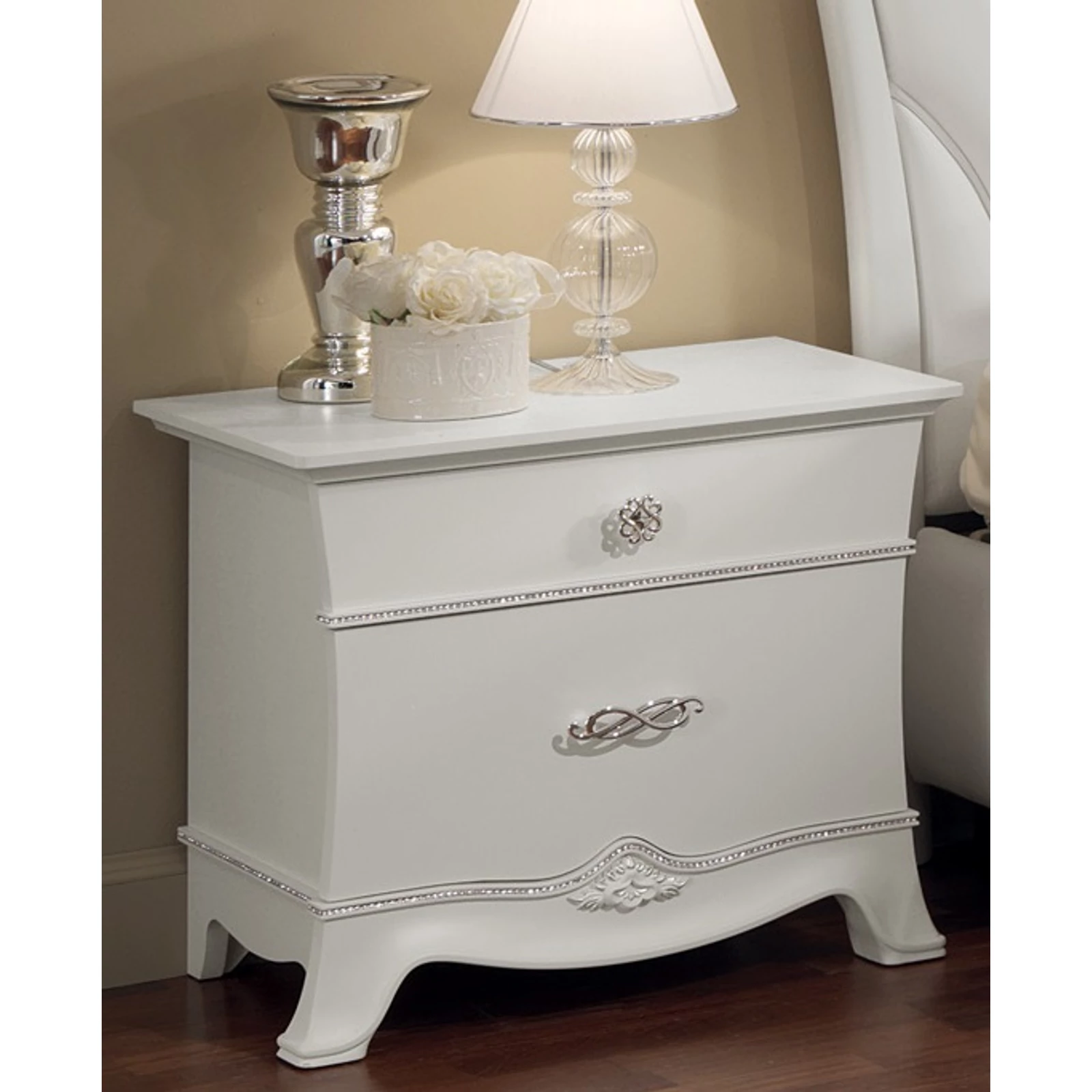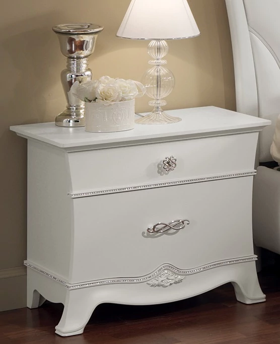 Headboard and footboard in simil-wood with studded and upholstered panels using swarovski crystals or decorative white ash panelling.