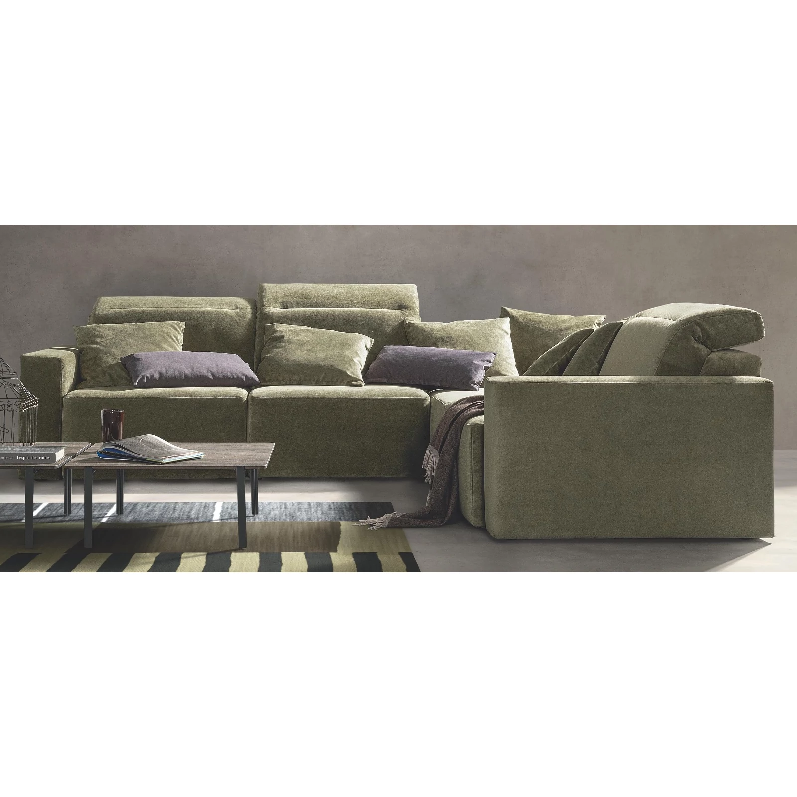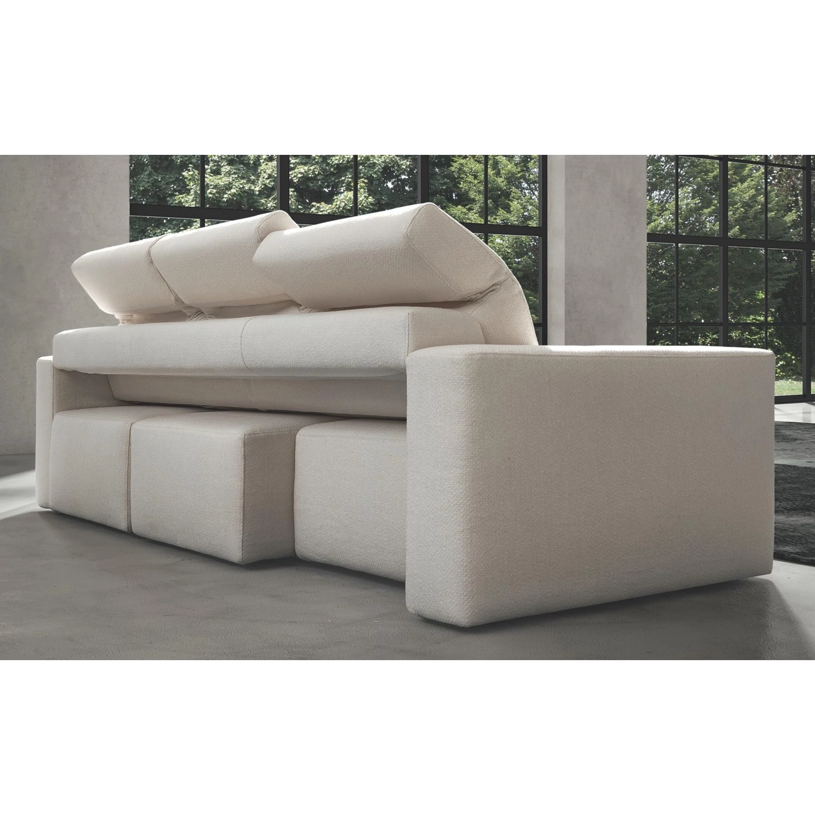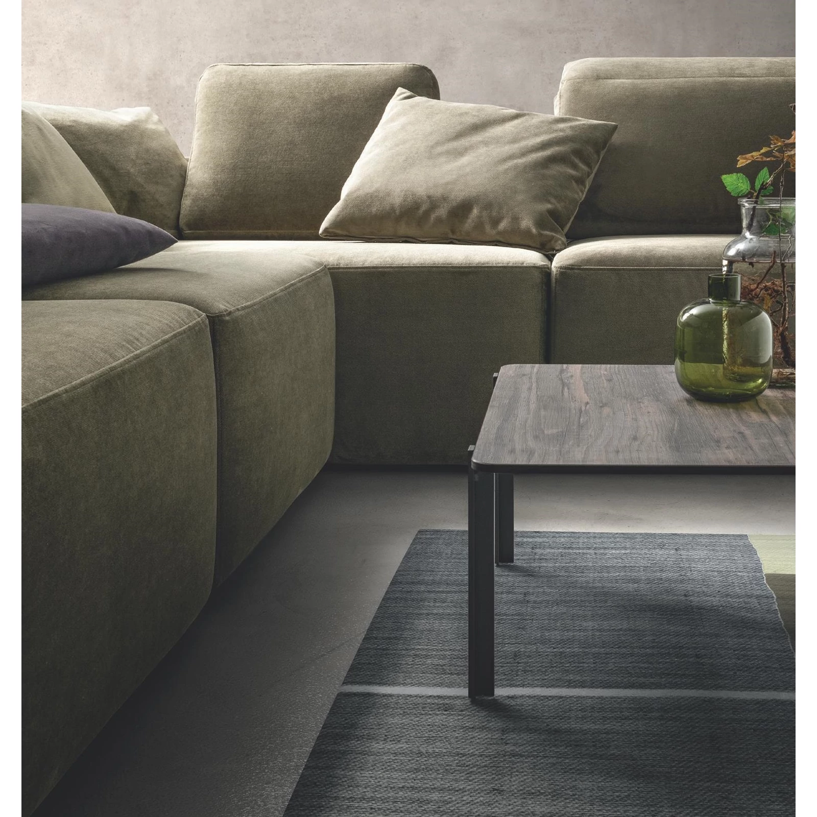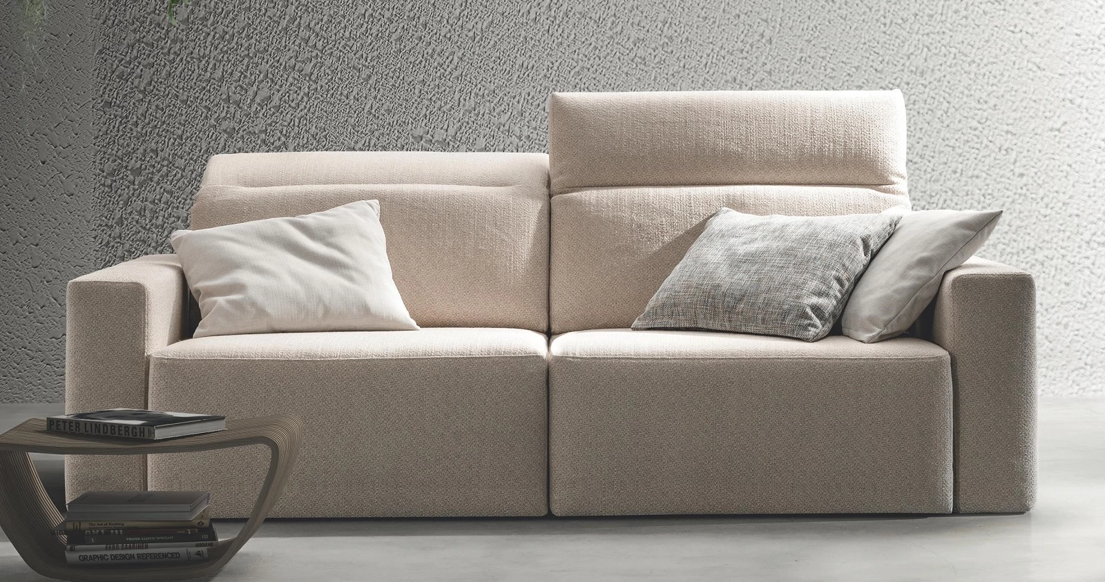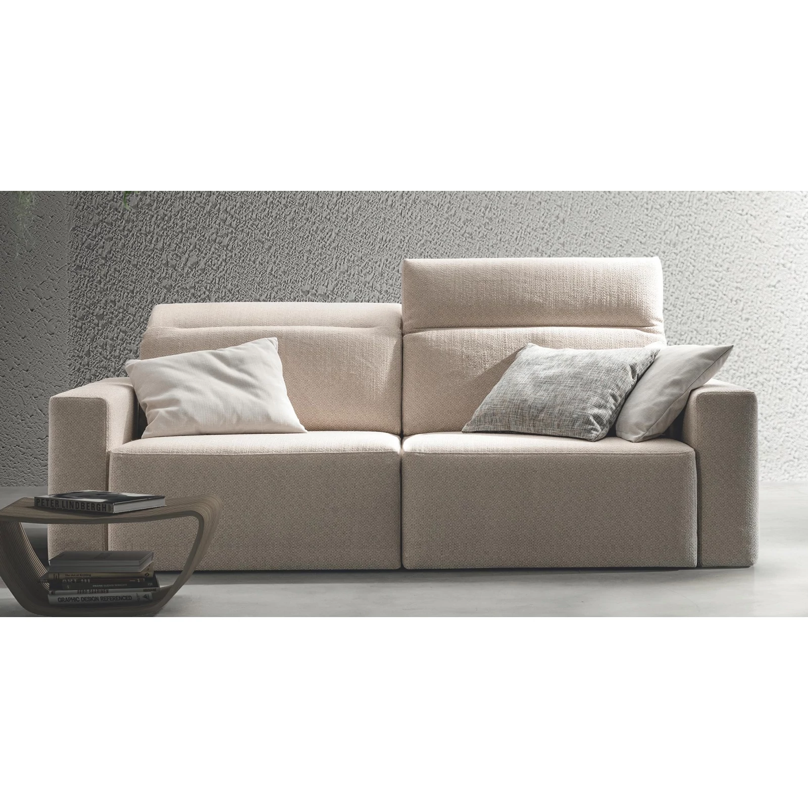 The Glide sofa is fully customizable: choose from multiple sizes and armrest styles, and from awide selection of fabrics and leathers; it can also be ordered as a complete living‑room set – so the most suitable piece is guaranteed! Matching side table, armchair, ottoman, and decorative cushions are available on request. For details and exact prices, the team is happy to help via the listed contacts.
