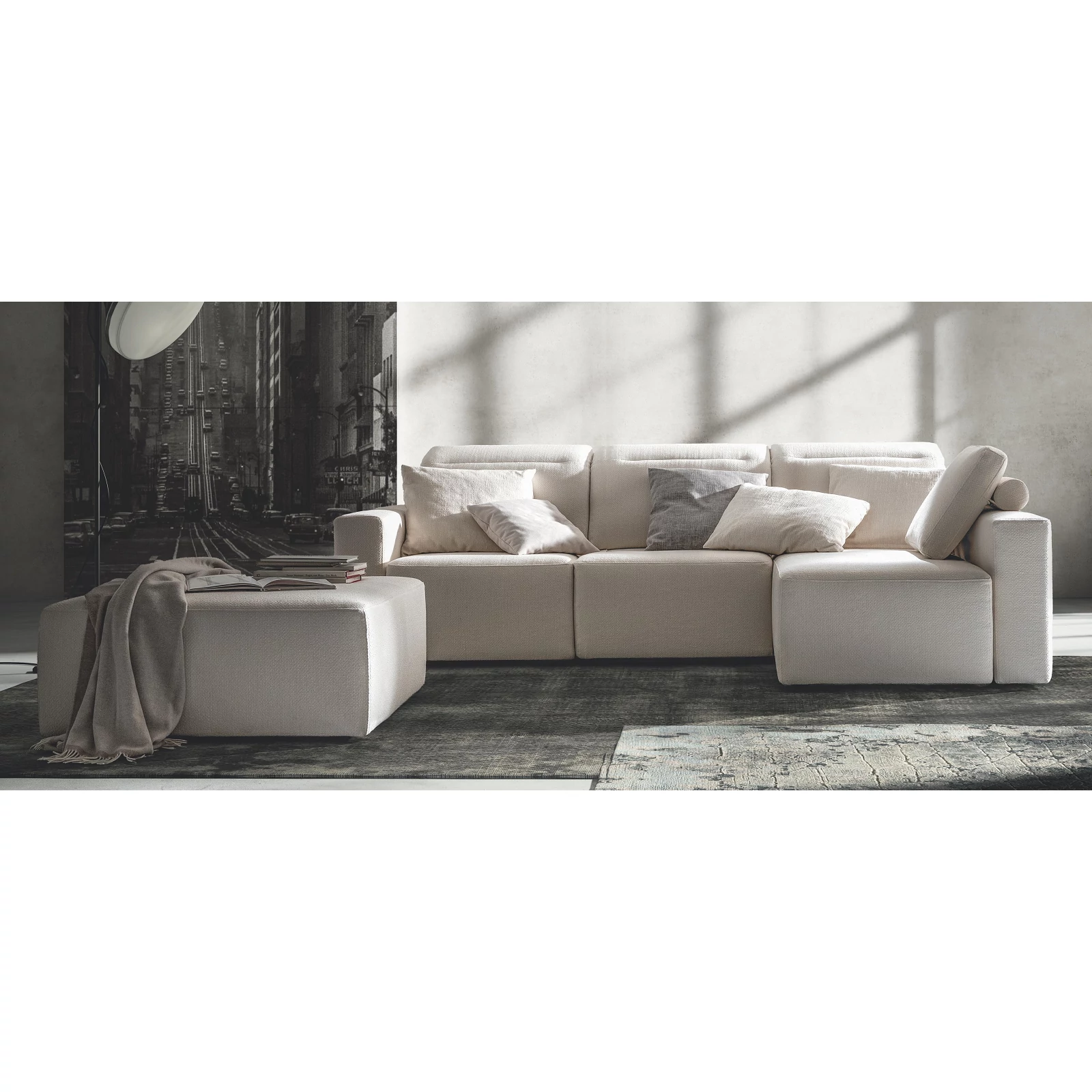 The Glide sofa introduces new comfort‑driven solutions through its set of forms and functions. Seat depth is adjustable and the headrests recline to multiple positions, delivering maximum comfort for any activity. A model belonging to the Samoa Flow collection.