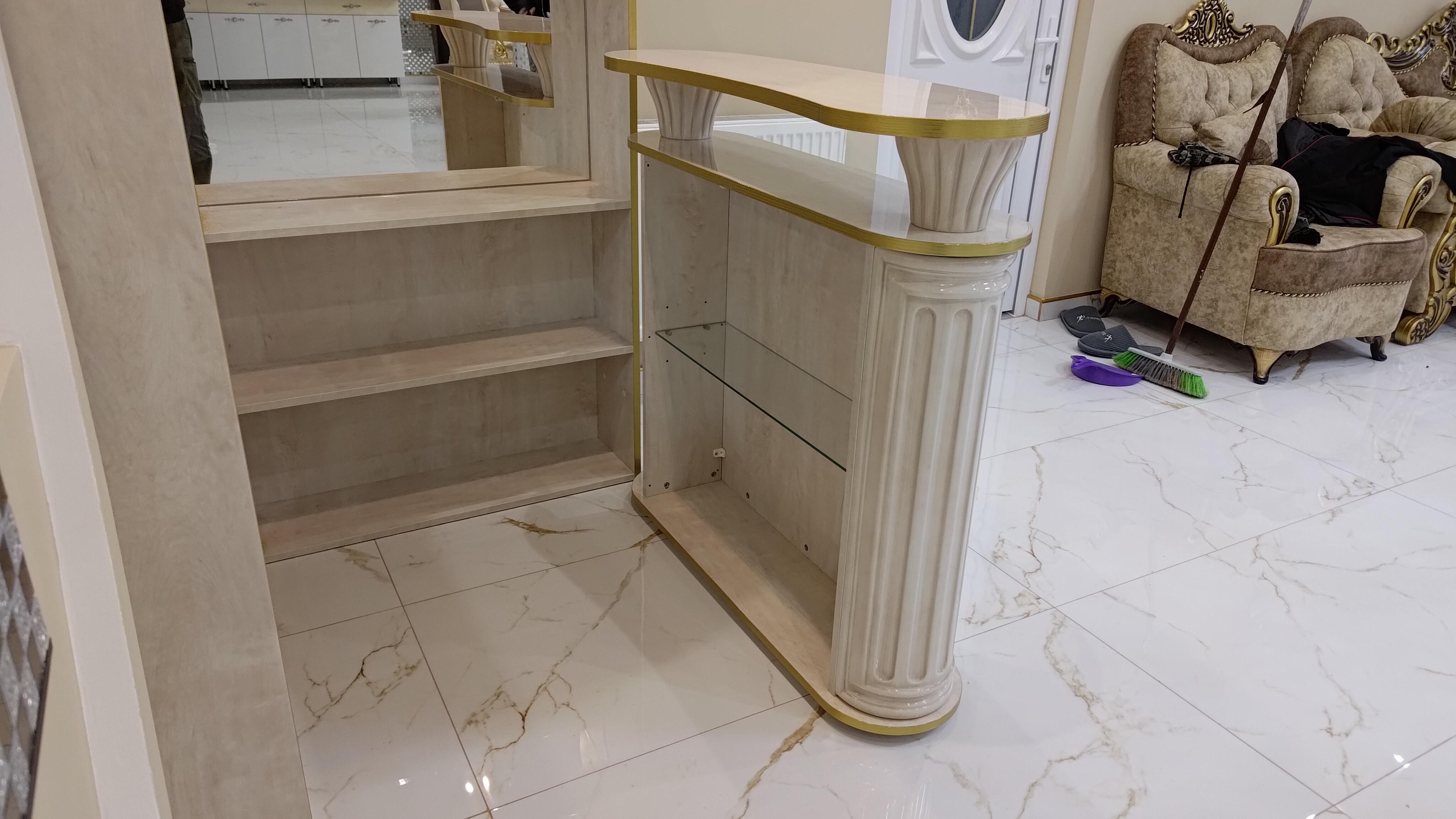 Sokszor azt tapasztaljuk, hogy meglepő, mennyi minden múlik az első pillantáson. Amikor először léptünk be a gárdonyi családi ház tágas, világos étkezőjébe, rögtön tudtuk, hogy itt valami különleges fog születni. A márvány padló hűvös eleganciája, a falakon visszaköszönő arany motívumok és a klasszikus görög oszlopfők mind-mind azt sugallták: ez a helyszín megérdemel egy olyan bútorcsaládot, amely nemcsak díszíti, hanem életre is kelti a teret.
