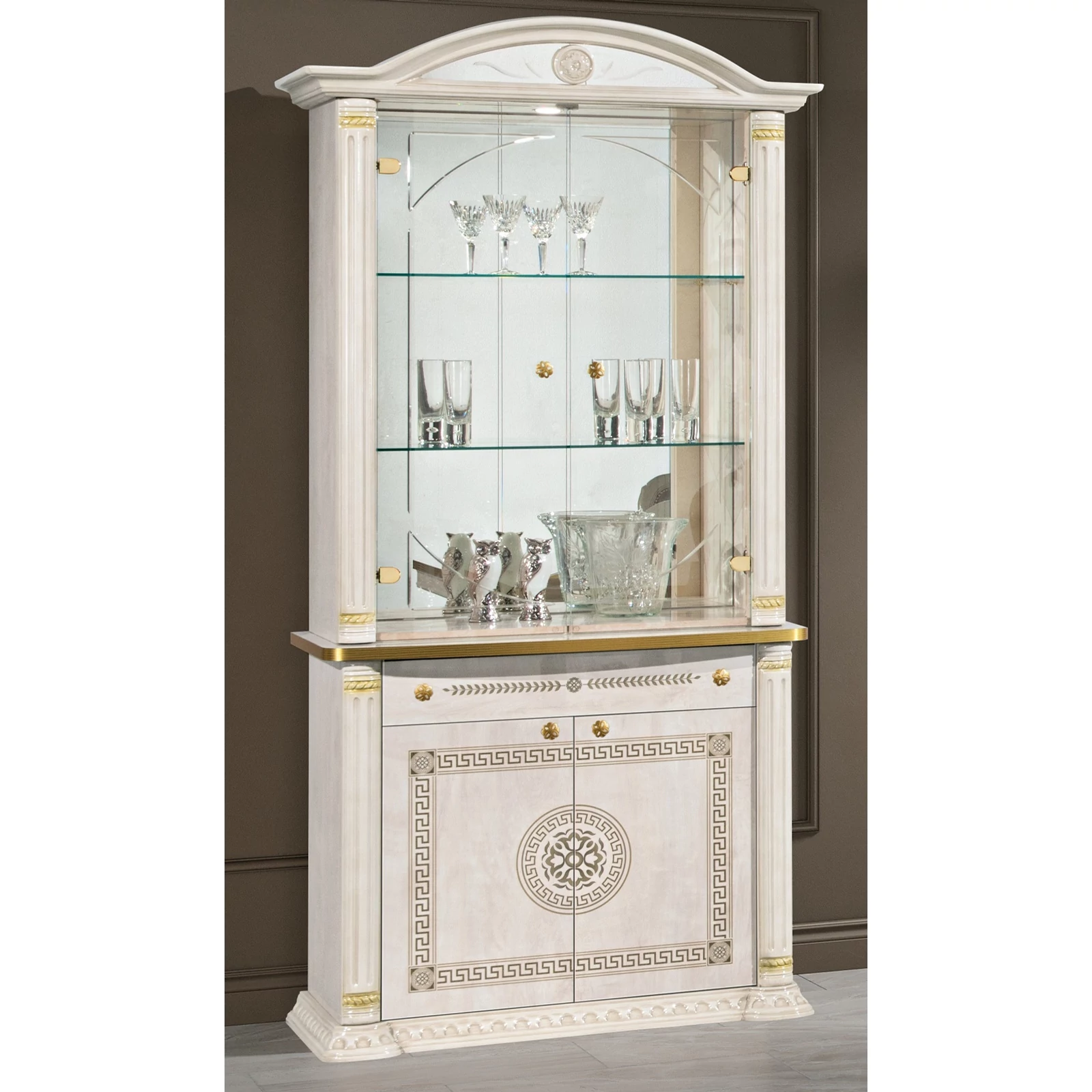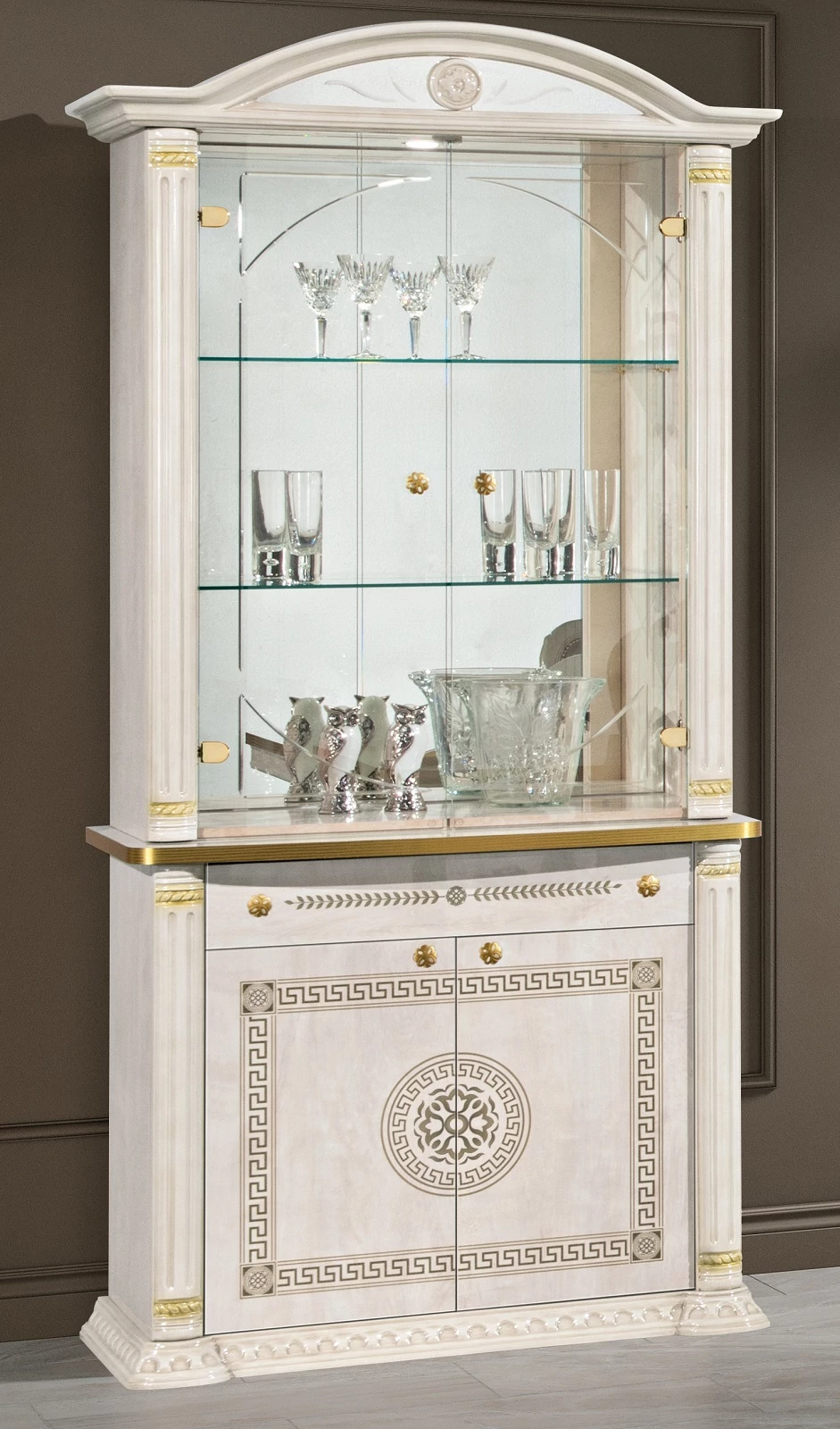 The collection consists of a number of pieces of furniture, including a corner cabinet, a TV chest of drawers and a display case, which can be perfectly combined with each other, and thanks to the high-gloss implementation and sophisticated lines, they reflect modernity and elegance. Be sure to check out all components of the Aurora collection!