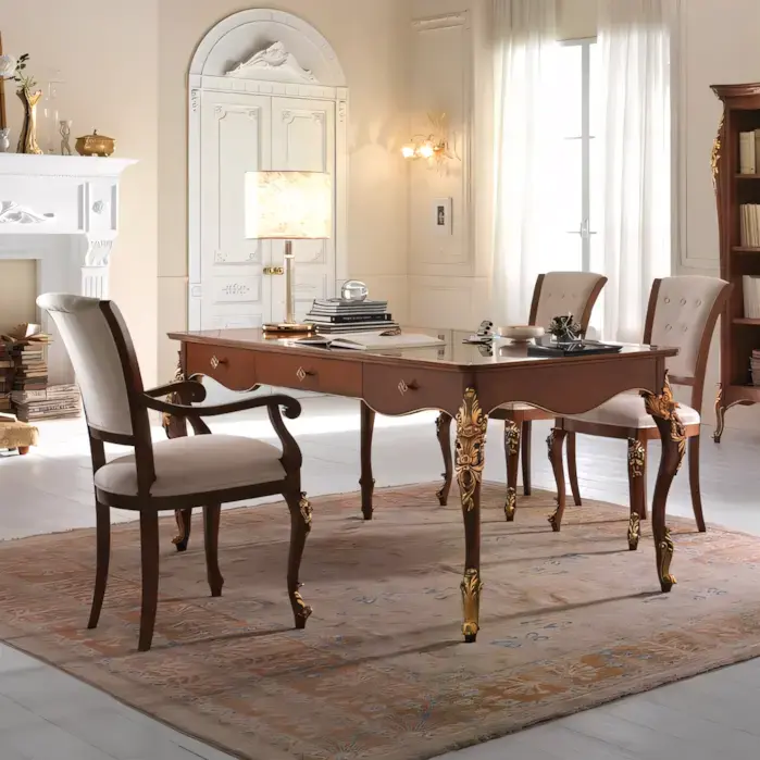 Writing Desk with 3 Drawers, with Carved Decoration – Morello 3860
