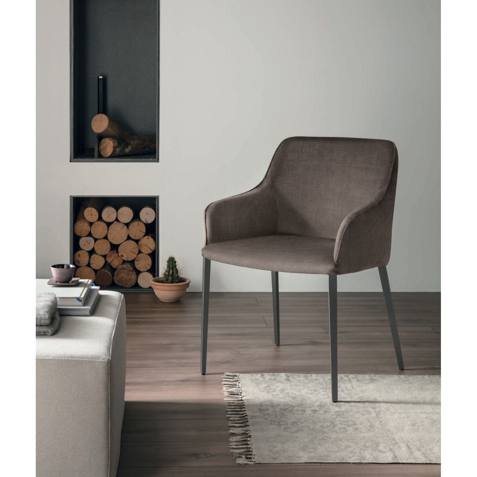 The Lilium armchair preserves the original chair version’s balanced design, combining a comfortable seat with a wraparound backrest. This compact armchair offers calm, comfortable relaxation for modern-style interiors where high-quality Italian design is essential. Available in a wide selection of fabrics and leathers.