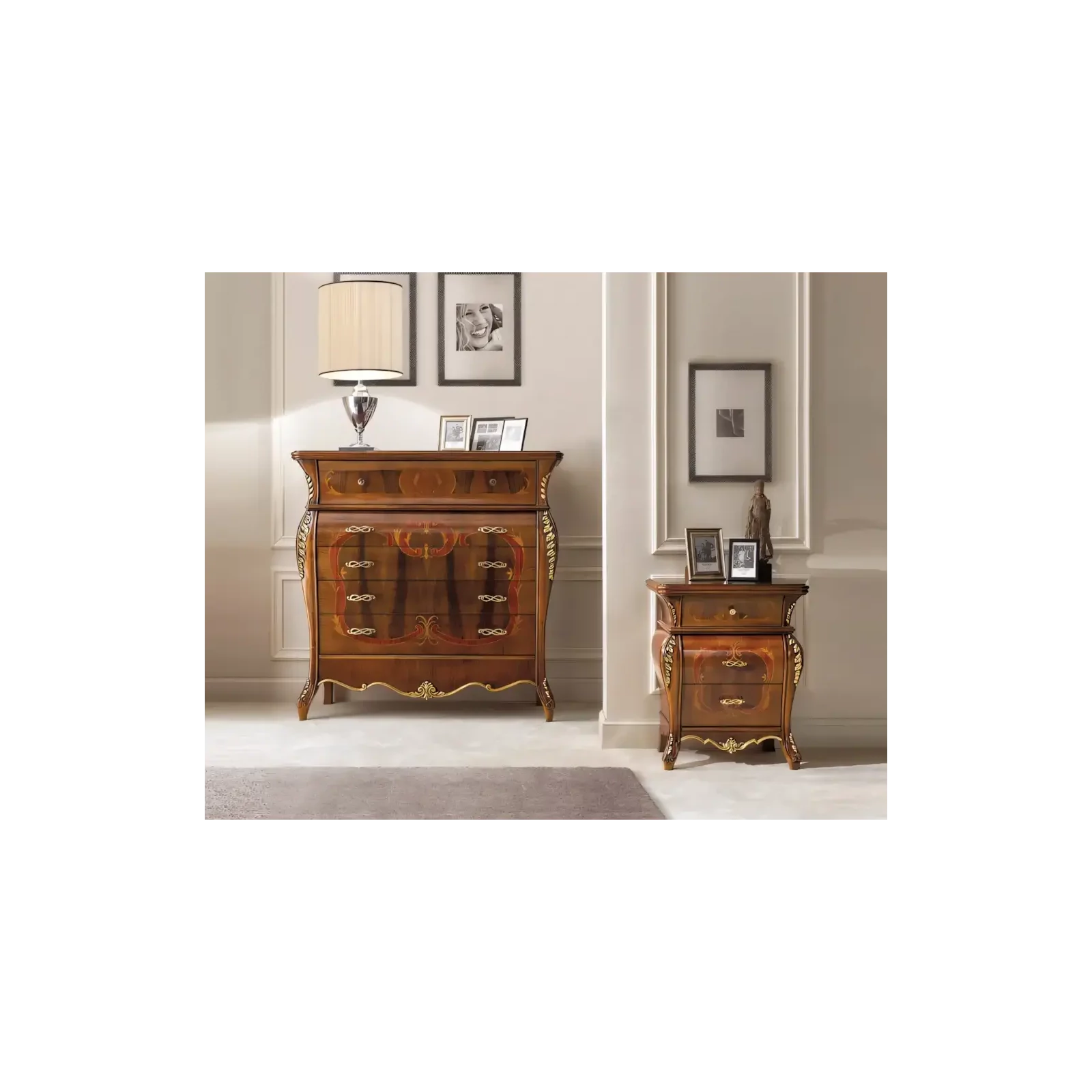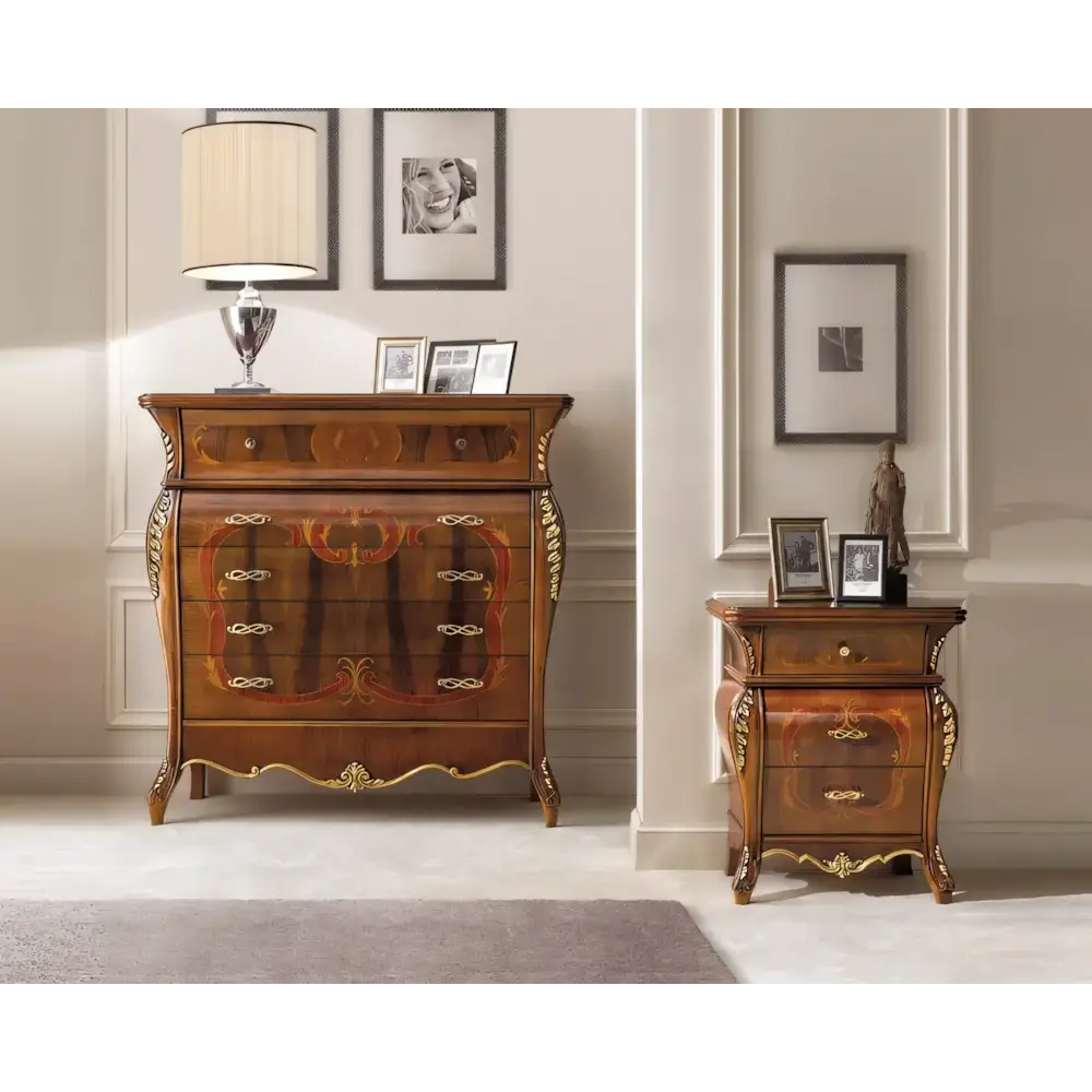Chest of Drawers with 2 Nightstands, with Inlay – Morello 4334