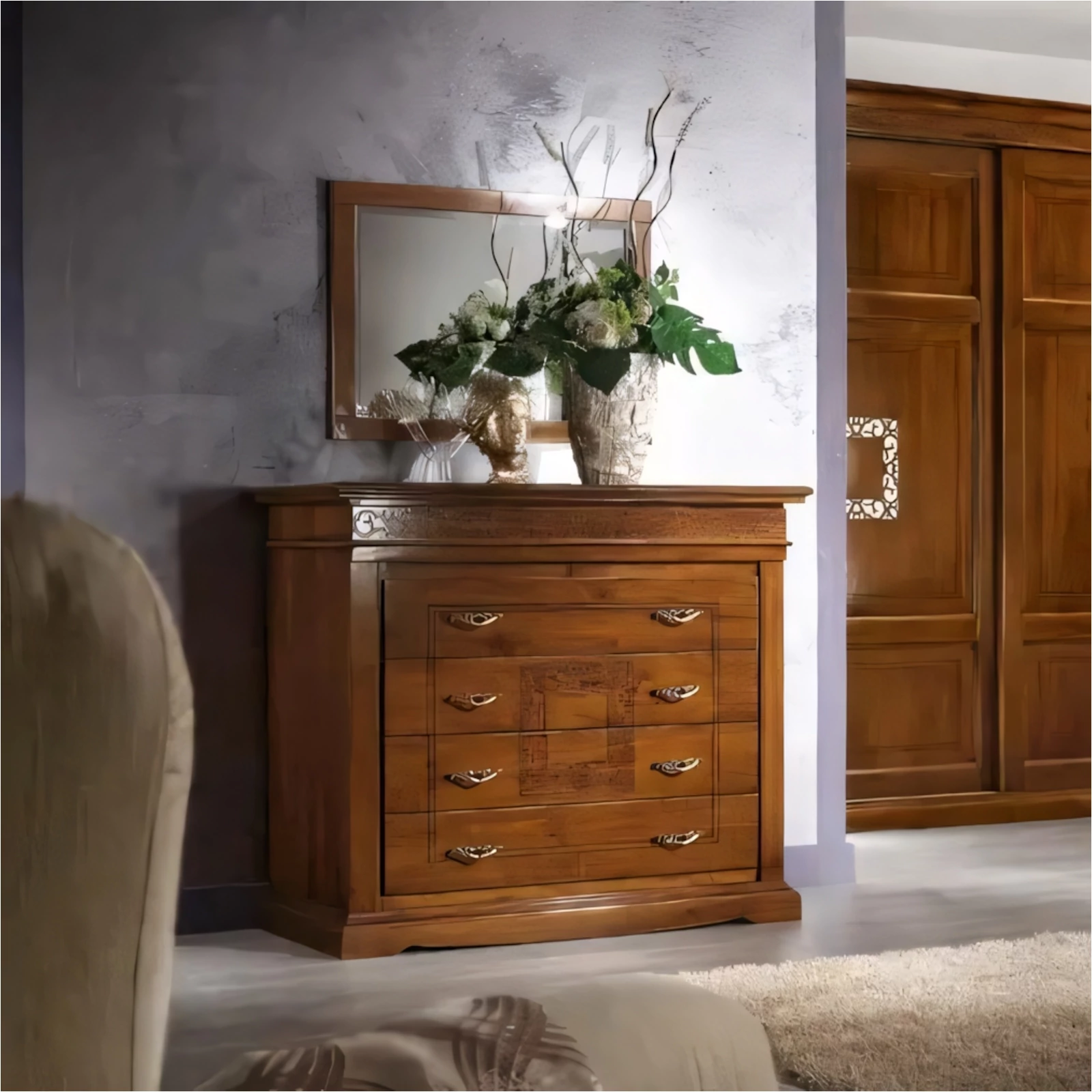 Chest of Drawers with 4 Drawers, with Carved Decoration – Morello 4162