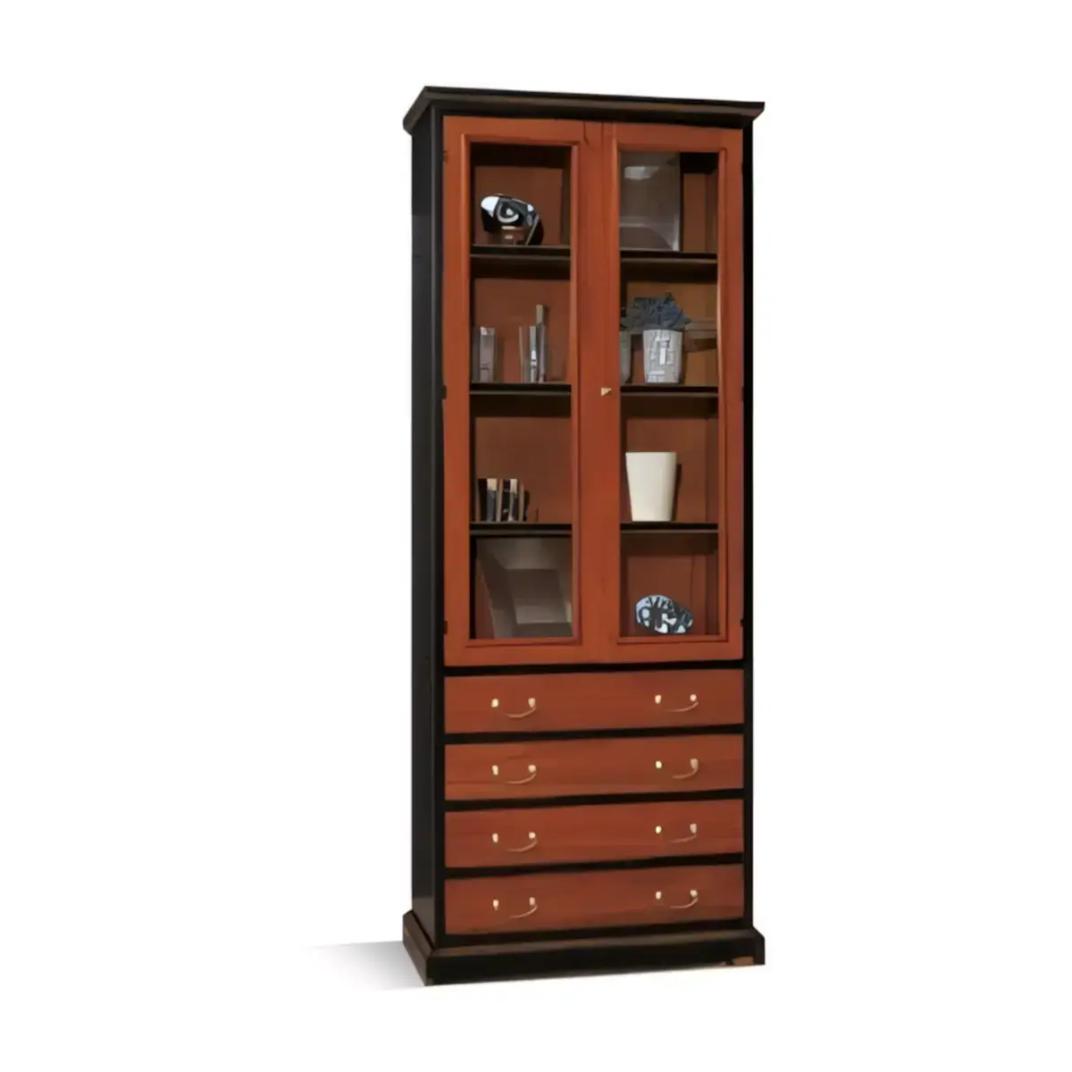 Bookshelf Unit with 4 Shelves, 2 Glass Doors (4/4), with 4 Drawers – Morello 2902