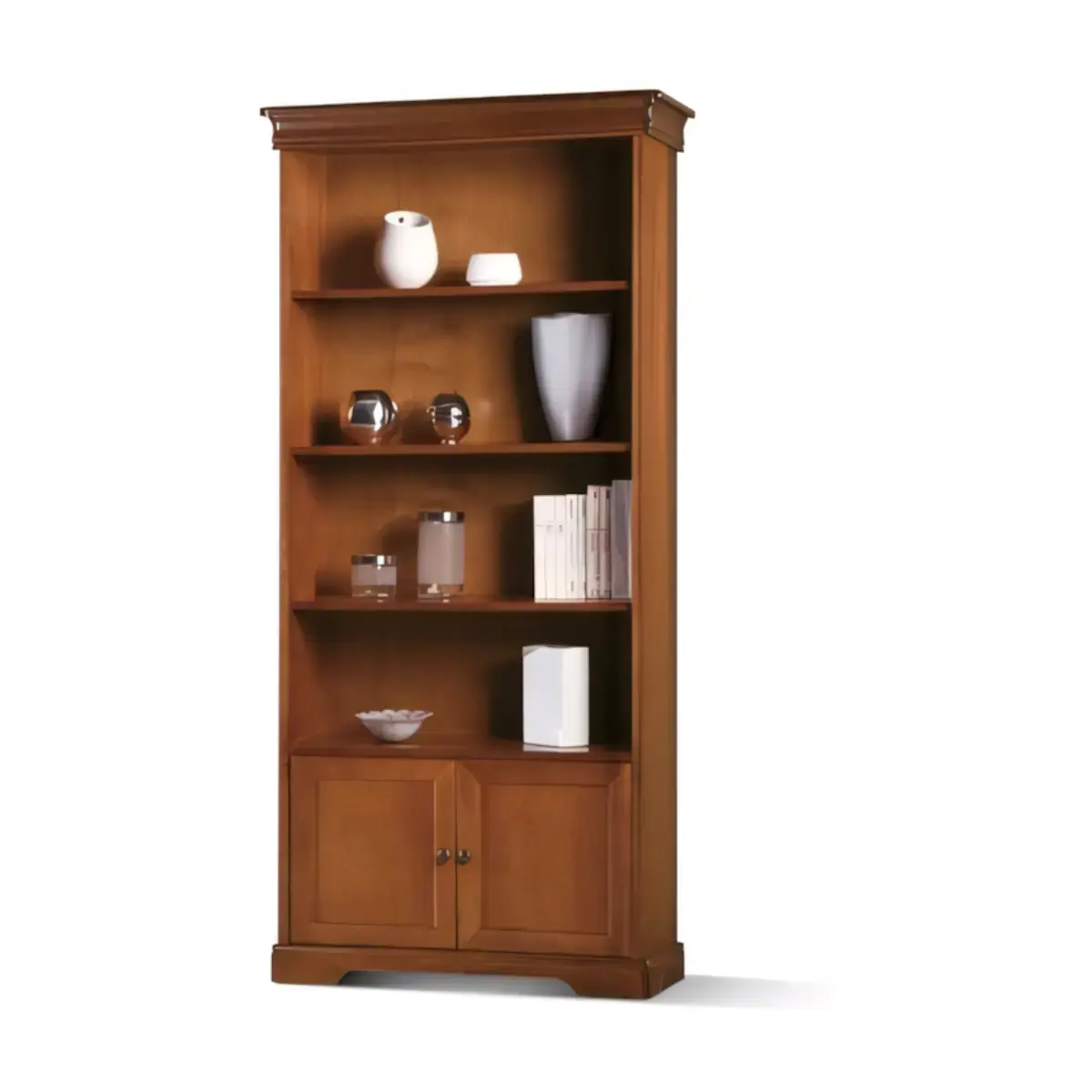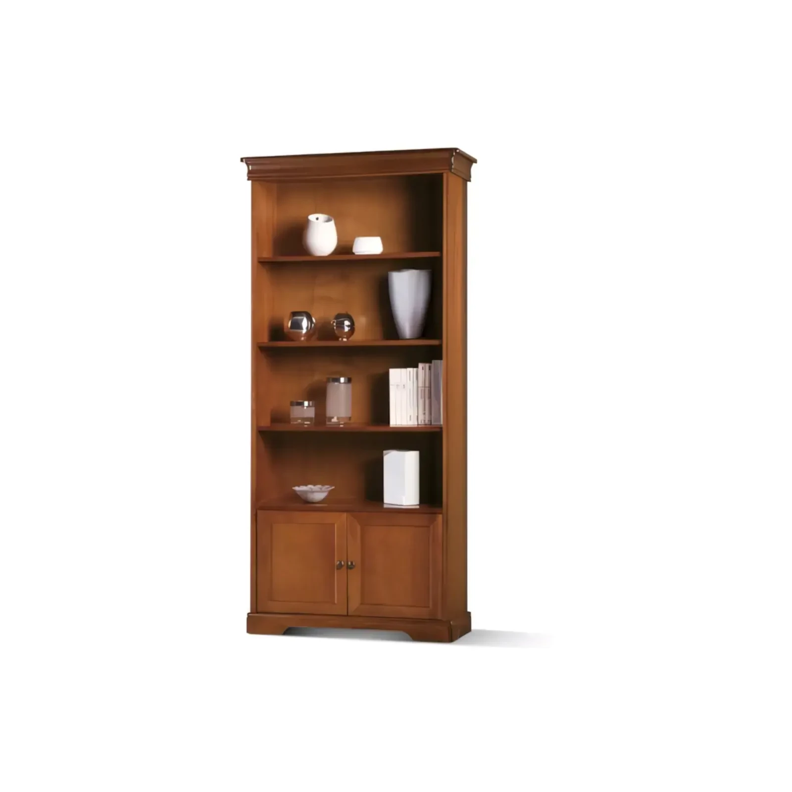Bookshelf Unit with 4 Shelves, with 2-Door Lower Storage Section, Louis Philippe Style – Morello Luigi Filippo 2923