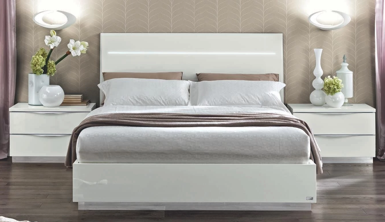 Onda LEGNO Double bedstead with bedding container - 180x200 cm, with LED-light, white