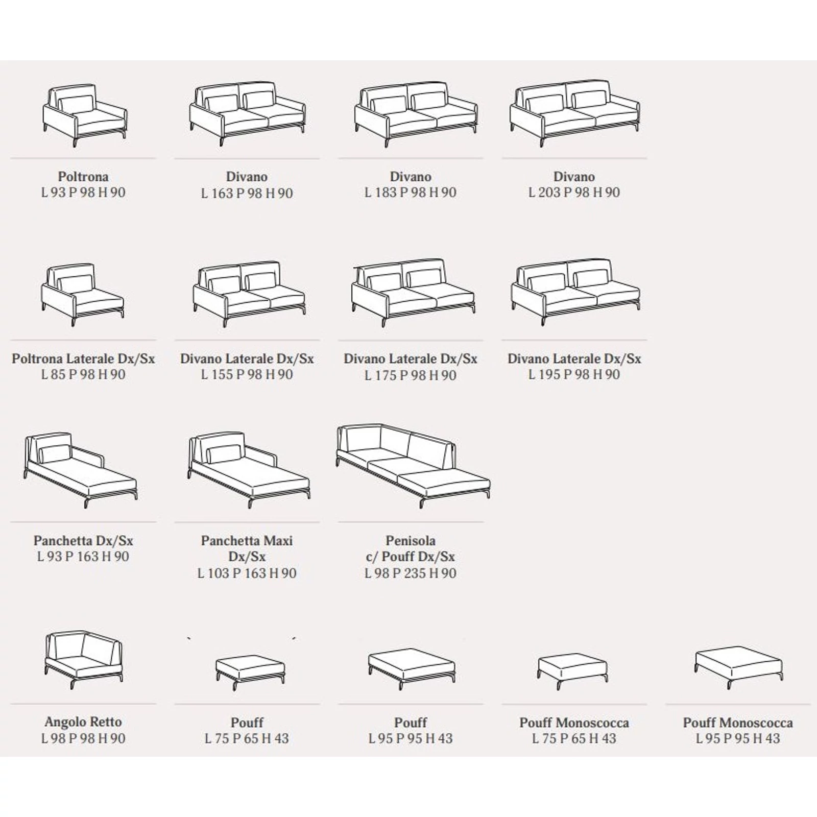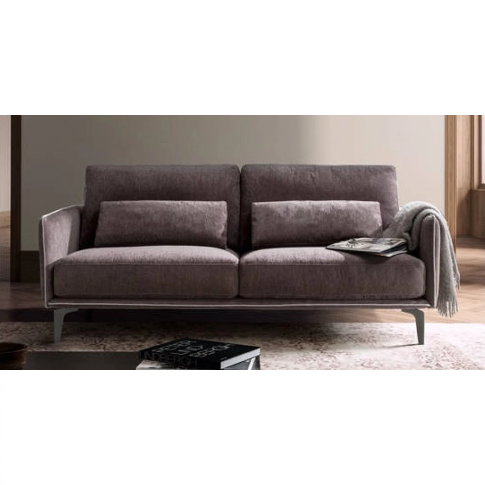 The Living Minimal sofa is fully customizable: choose from several sizes and from a wide selection of fabrics and leathers; it can also be ordered as a complete living‑room set – so the most suitable piece is guaranteed! Matching ottoman and decorative cushions are available on request. For details and exact prices, the team is happy to help via the listed contacts.