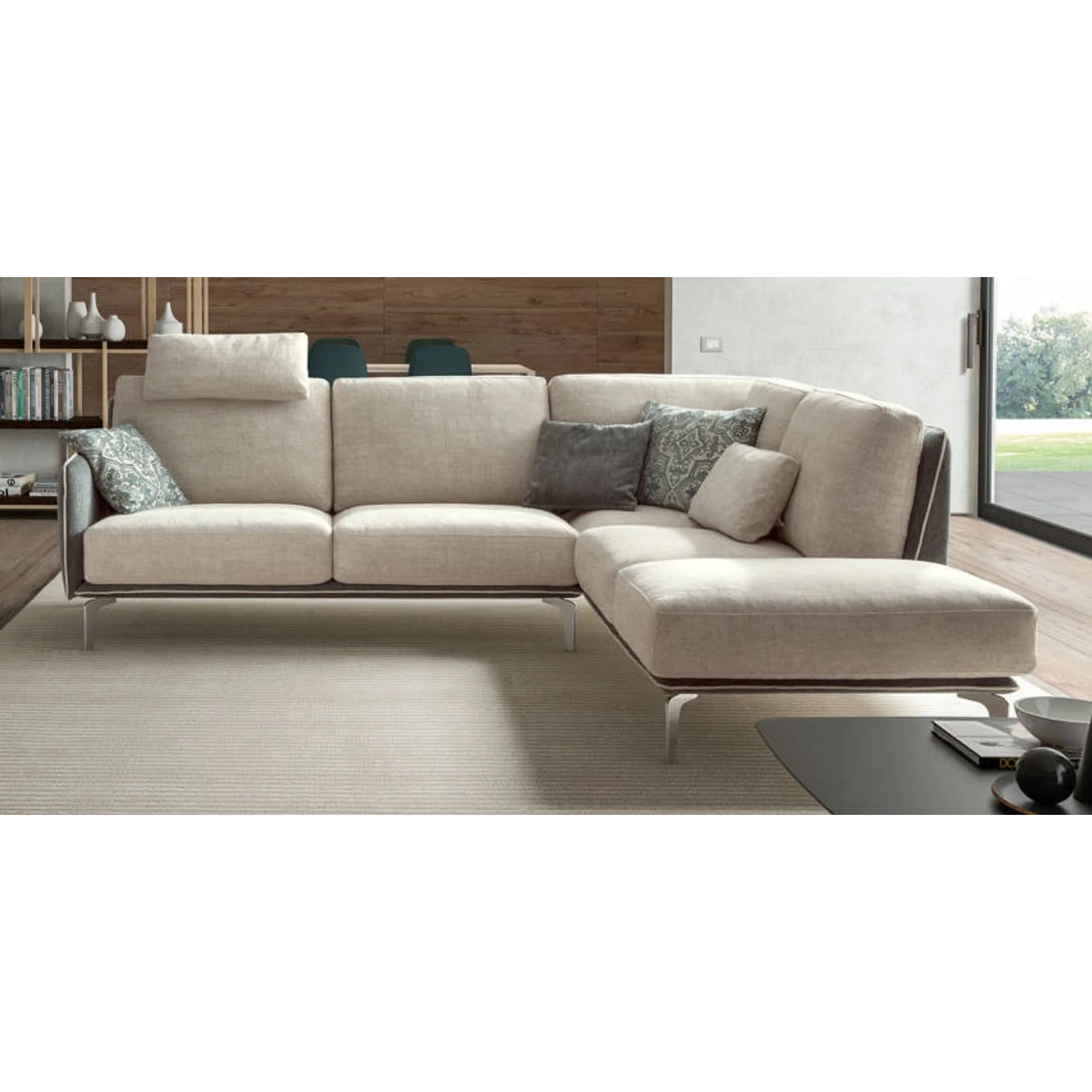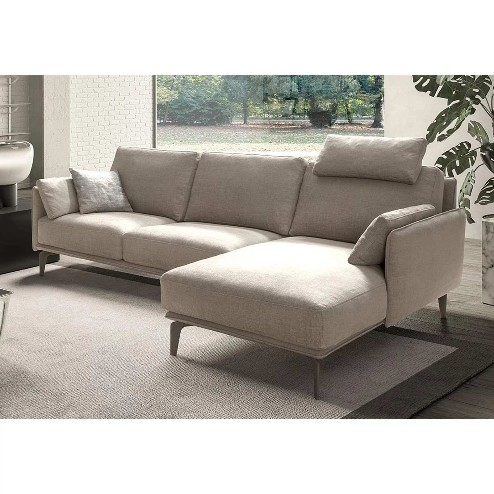 The Living Minimal sofa’s lightness lies in its unique build: the seat and backrest are plush cushions embraced by a simple yet stylish frame. The extremely slim armrests were designed with minimalism and space optimization in mind. With head‑ and lumbar supports, relaxation reaches a new level, providing optimal neck support and a comfortable, ergonomic sitting position. A model belonging to the Samoa Living collection.