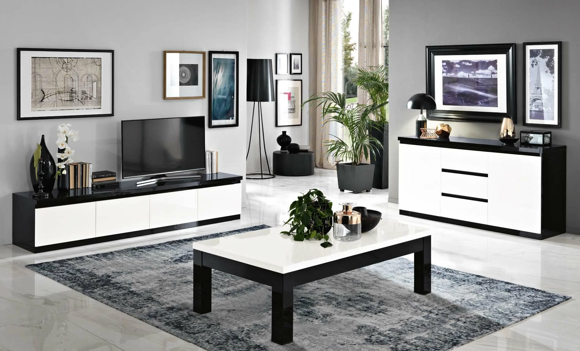 - LM Roma Day TV commode - 220 cm, black-white: 2200mm x 500mm x 440mm