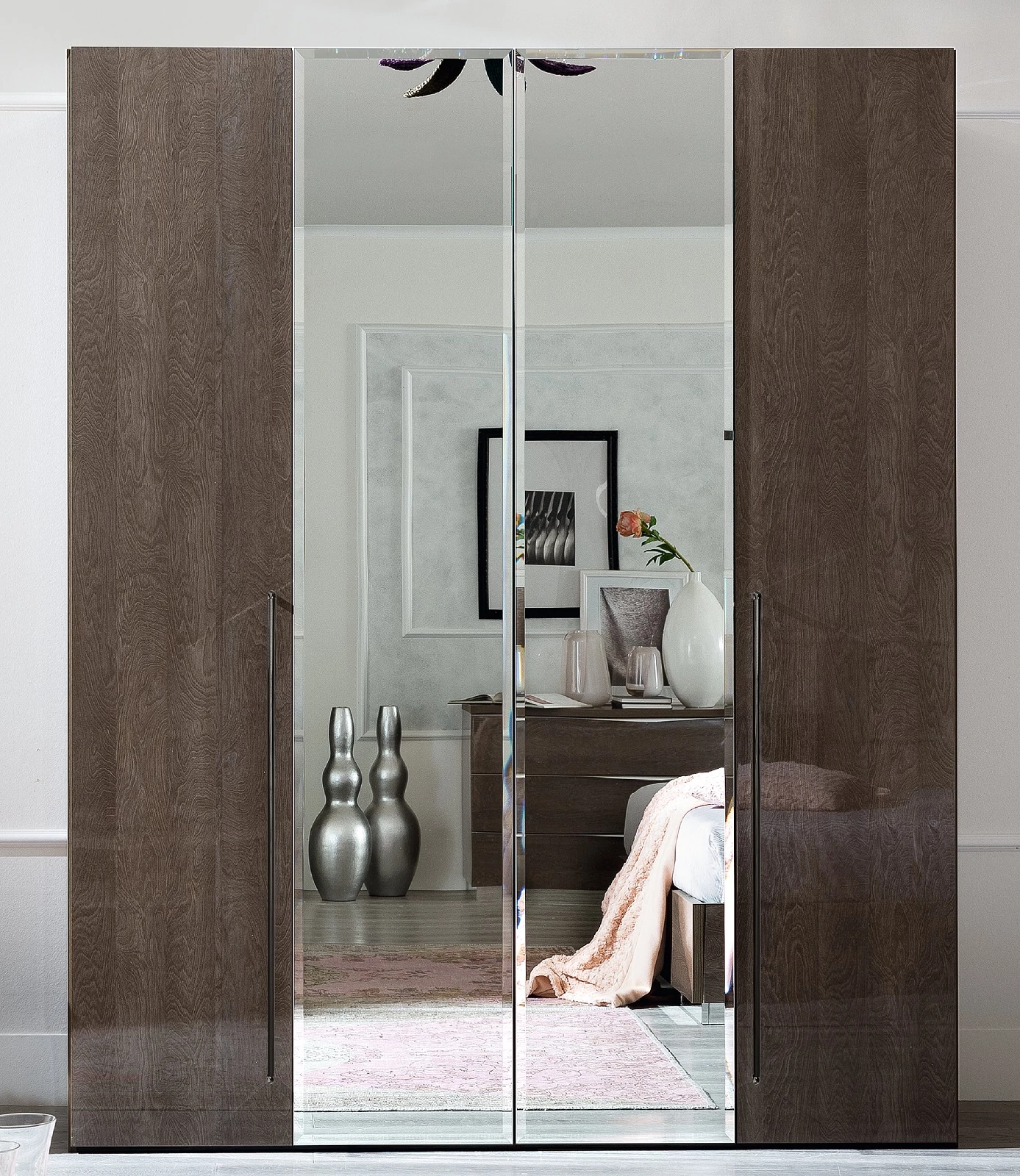 Maia 4-doors cabinet, with 2 mirrored doors with MILANO shiny chrome handle - silver birch
