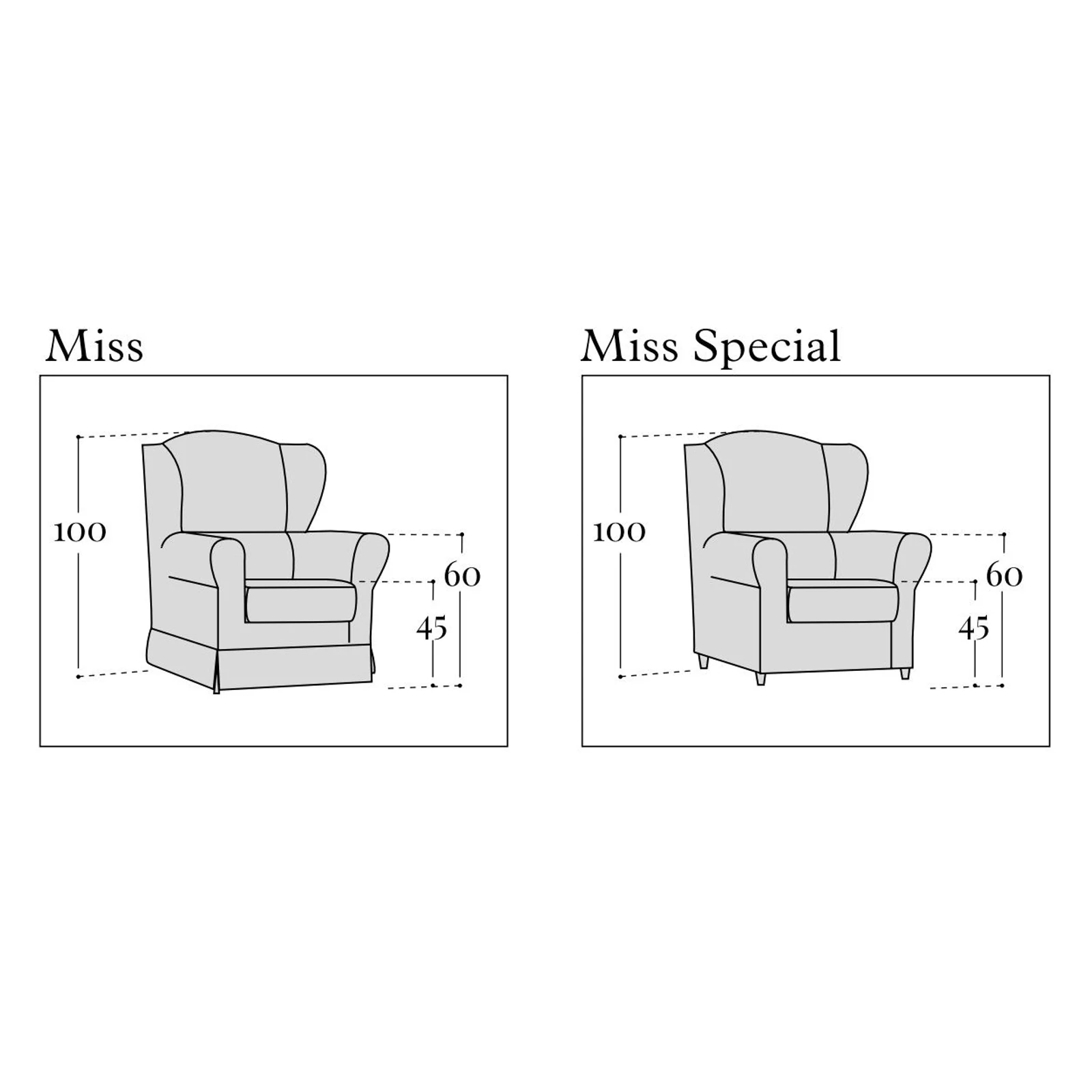 The Miss Special armchair is fully customizable: choose from several leg options and avast selection of fabrics and leathers– so the most suitable piece is guaranteed! Matching decorative cushions and armrest covers are available on request. For details and exact prices, the team is happy to help via the listed contacts.