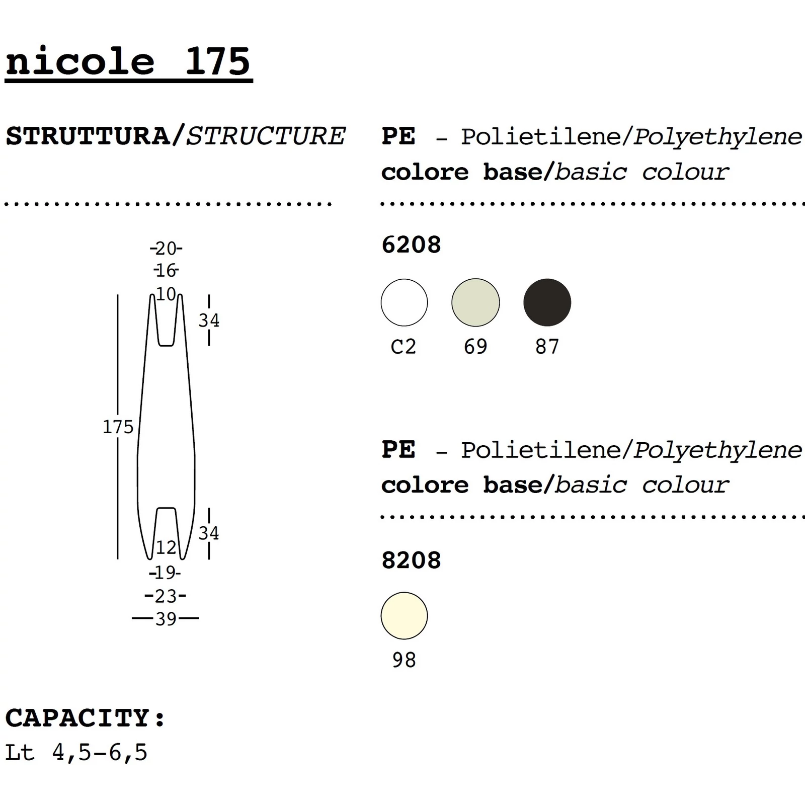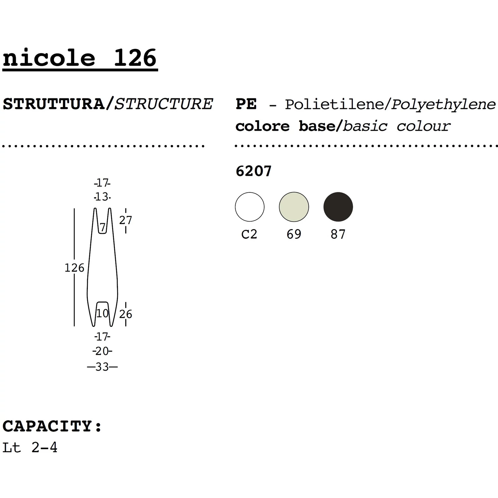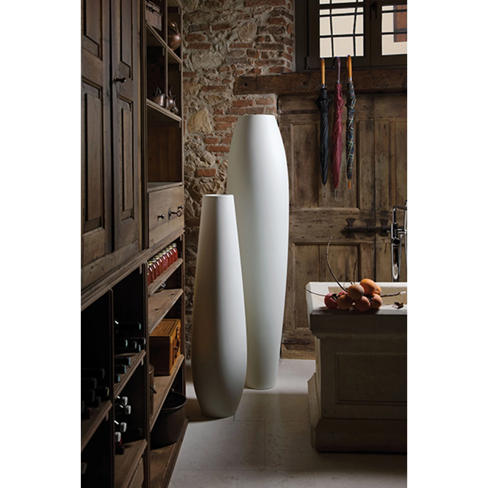 Double space vase, available in two sizes. The simple and essential shape makes it adaptable to any living environment or public space, with the chance place it in one direction or upside down. The racy and slender lines of this vase make it particularly suitable for any classical or modern, indoor or outdoor context. The impact of "Nicole" vases positioned in rows on garden walks and in corridors is quite attractive. Available also in luminous version.