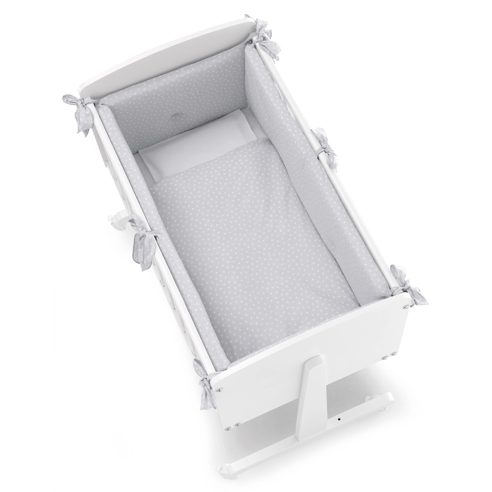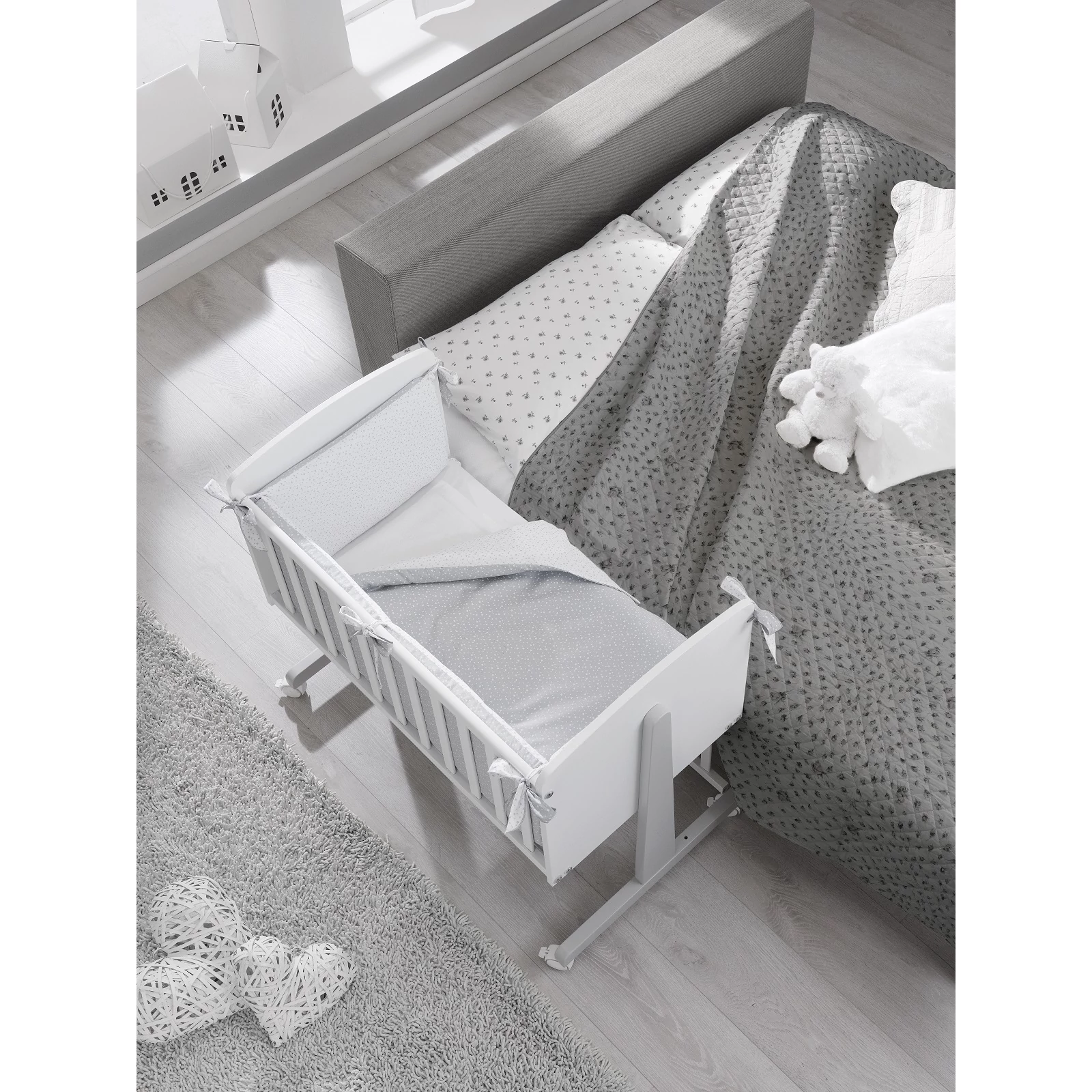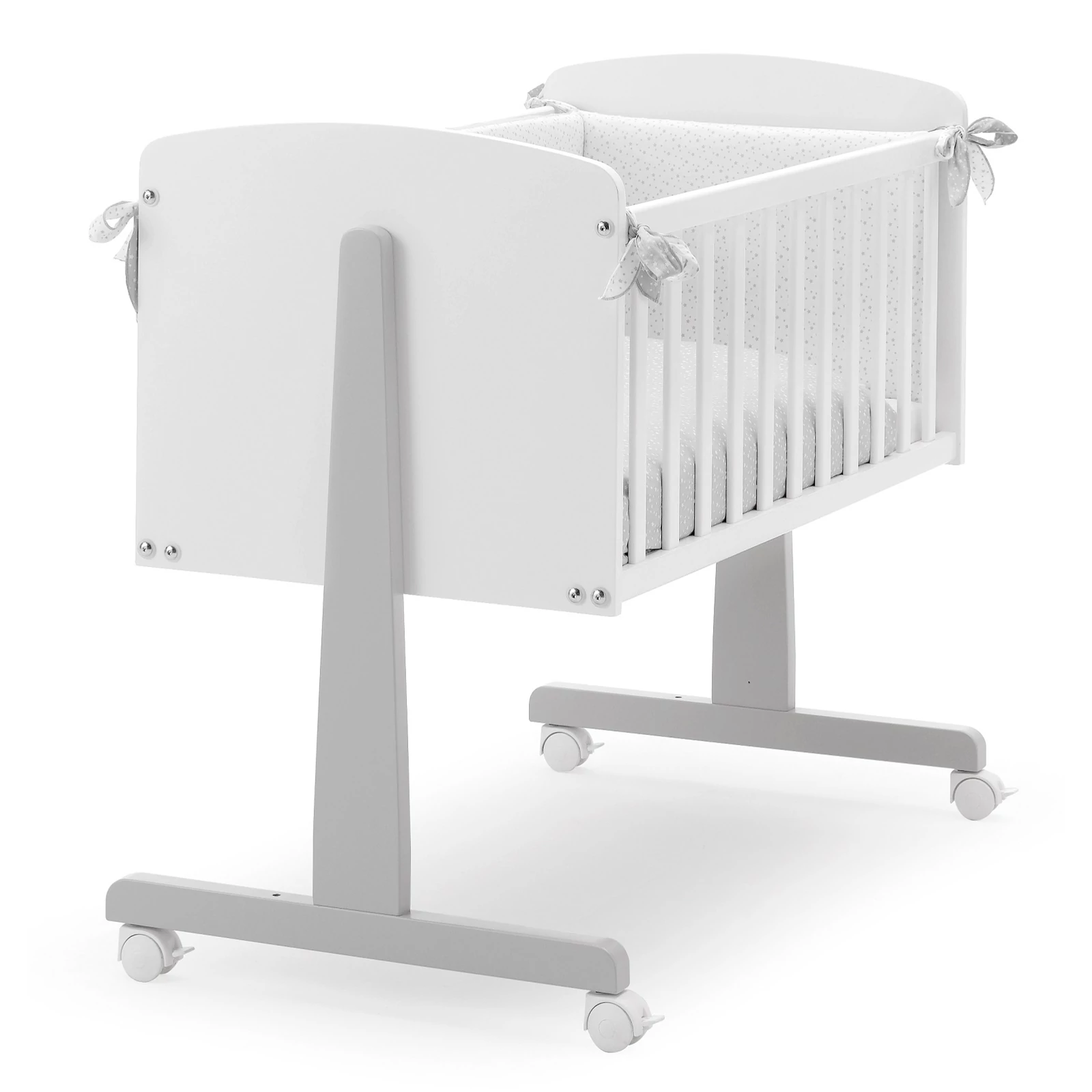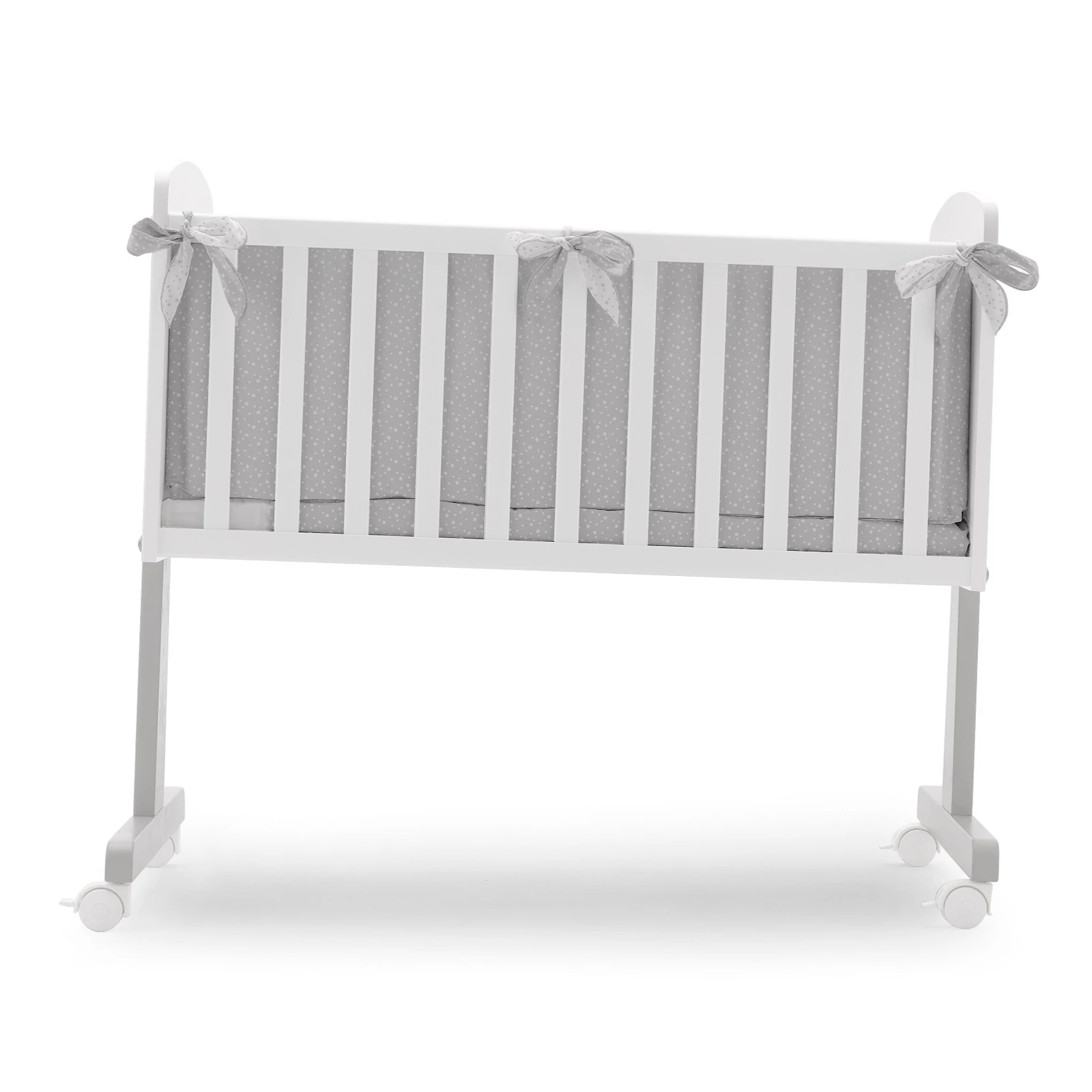 - Four-sided side lining, of which one side is separate so the crib can be fixed to the bed