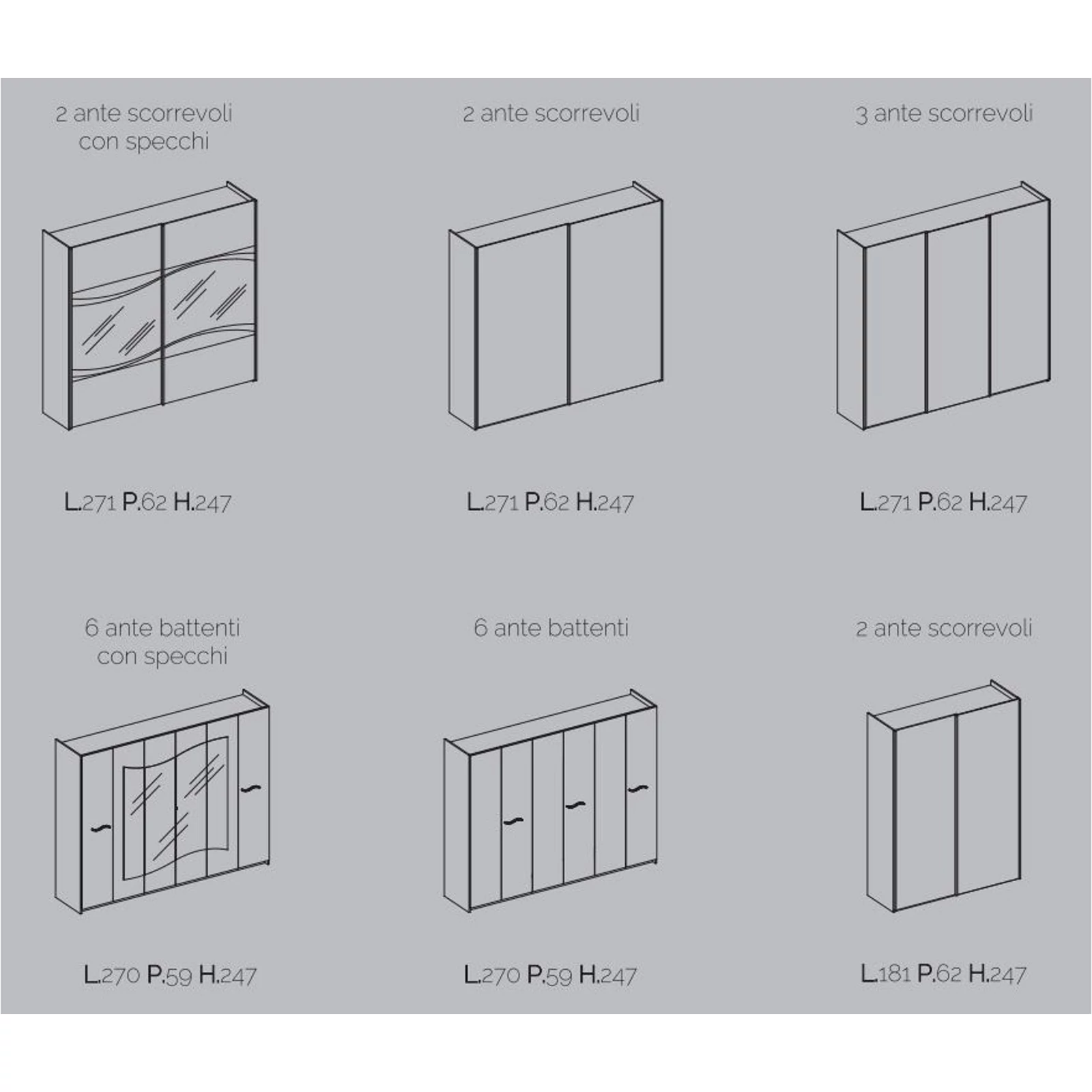 | Wardrobe size | 6 doors |