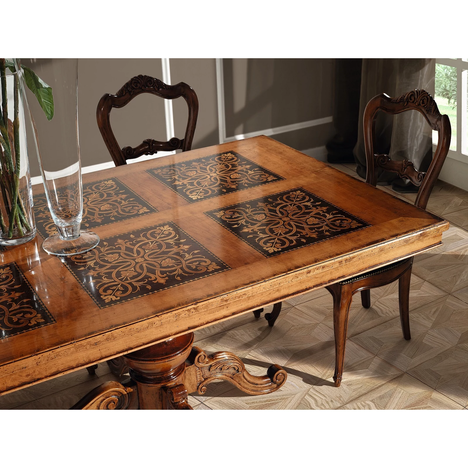 | Asztallap anyaga | Intarziás fa |