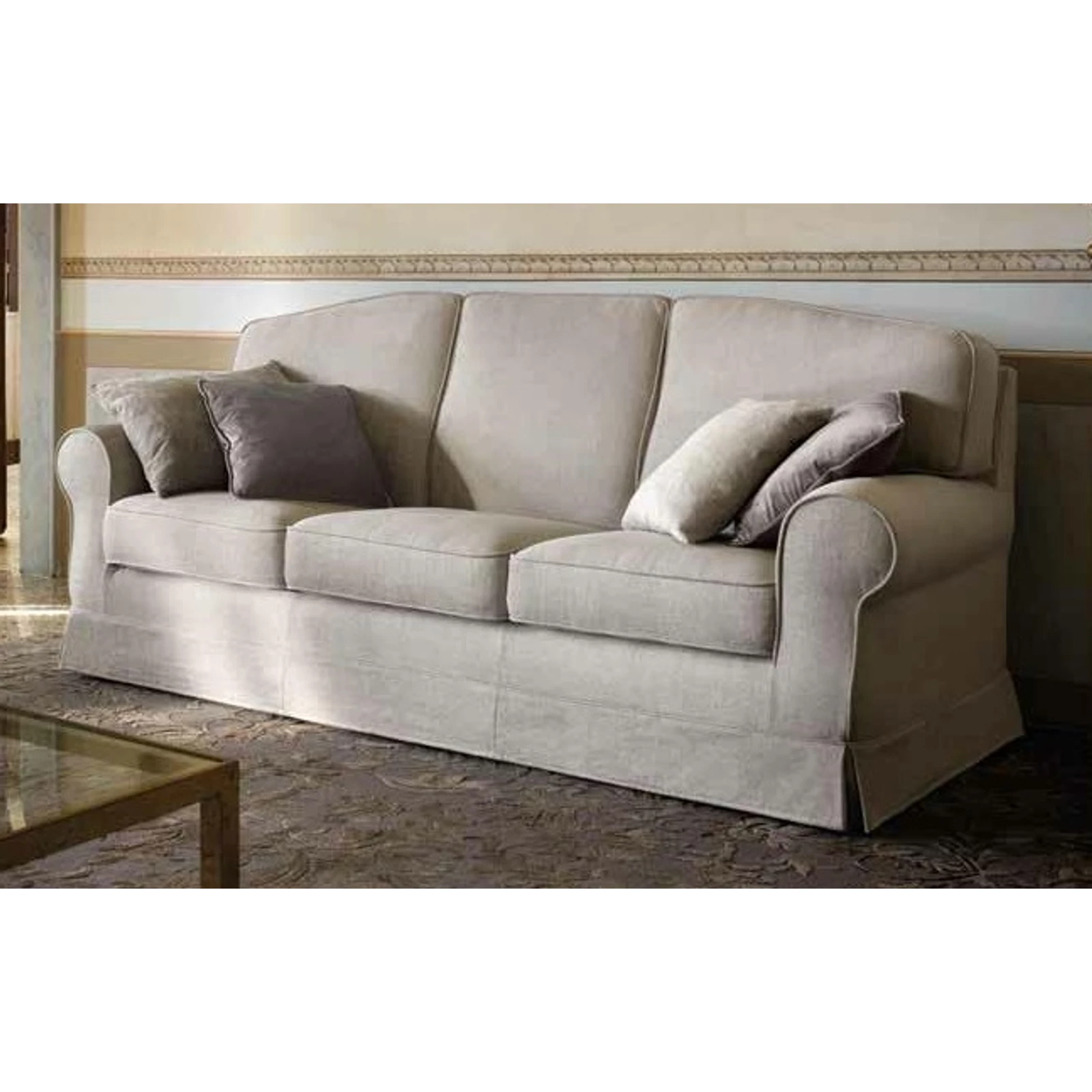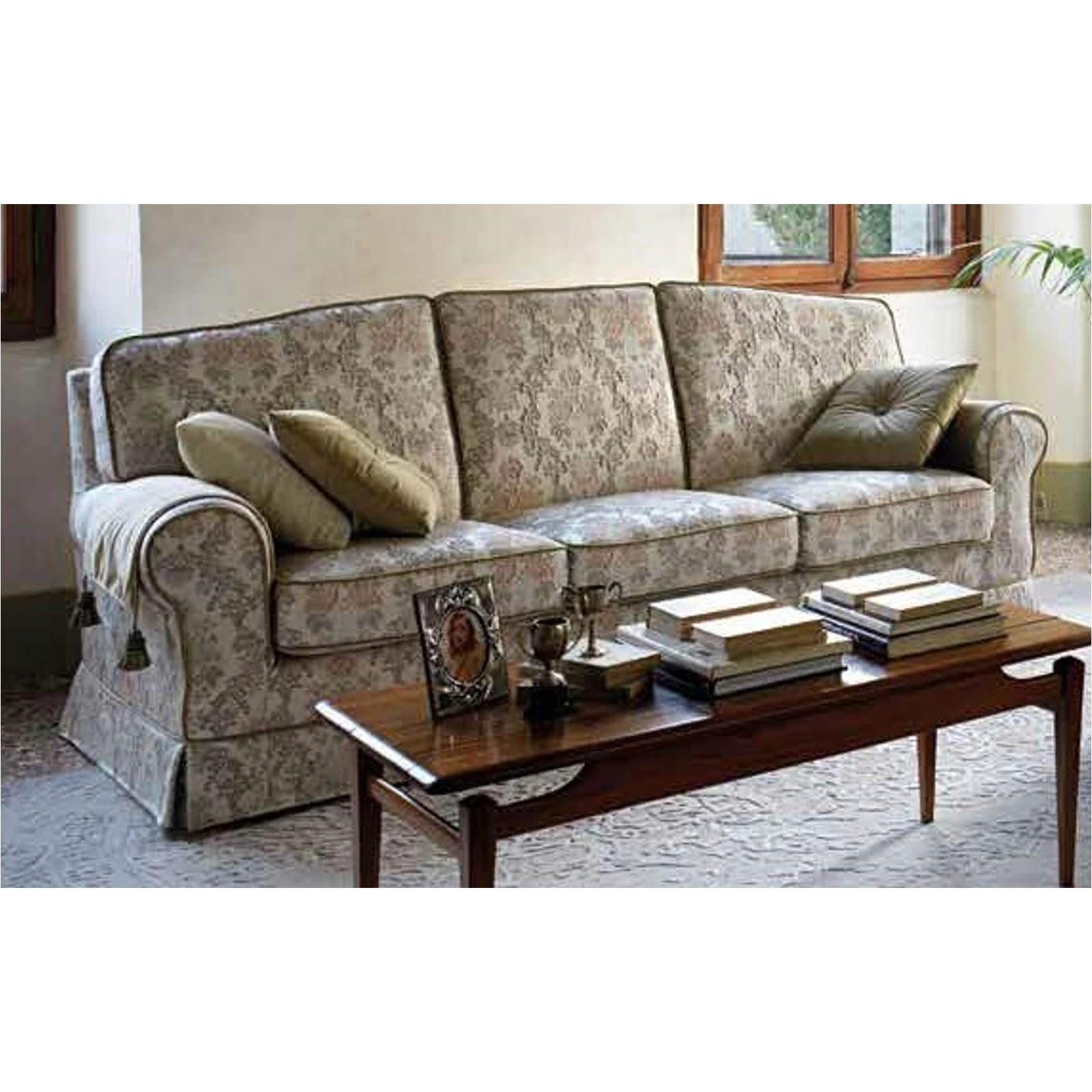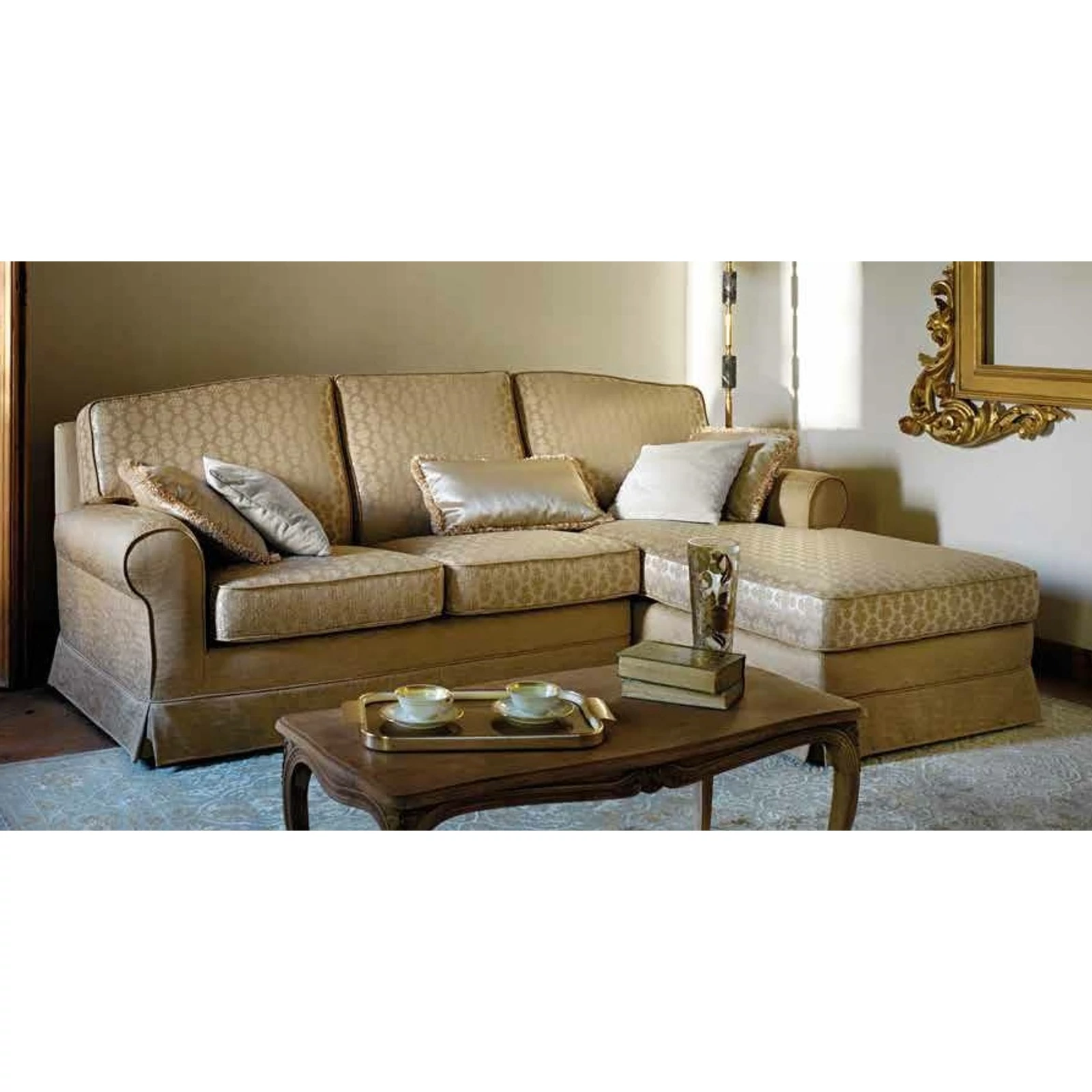 The Royal sofa strikes the golden mean between luxury and tradition. Sinuous curves, neutral colors. The great Italian classic returns, helping to rediscover the value and beauty of the past. A model belonging to the Samoa Classic collection.