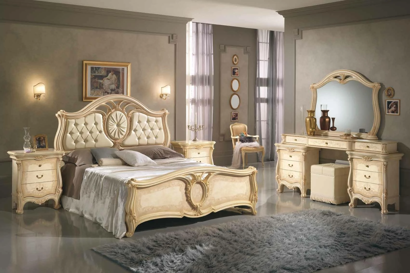 The Sovrana collection includes the most obvious forms and features of classic Italian tradition: the real wood, carvings, inlays, baroque lines and stitching. That is how these really eye-catching pieces of furniture born.