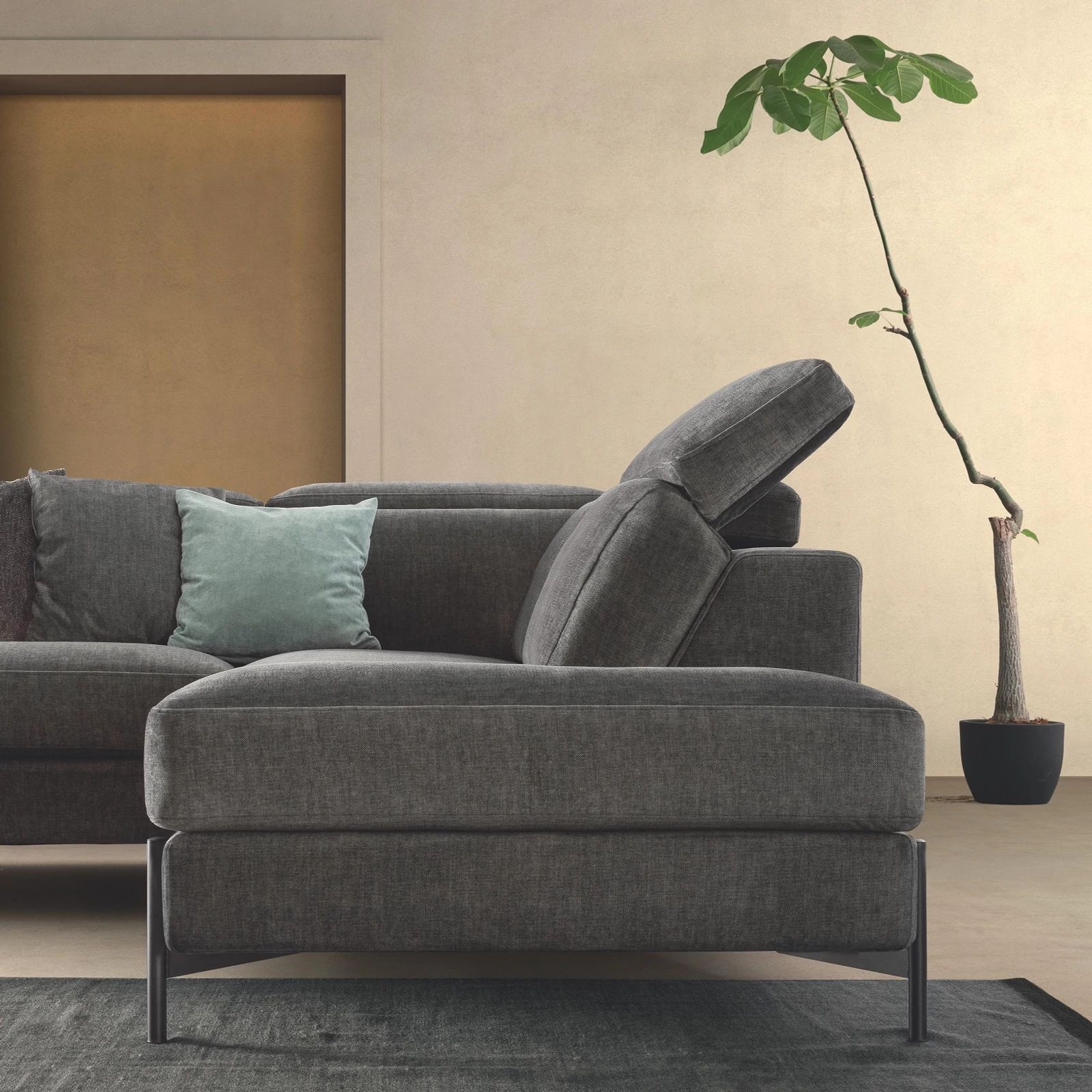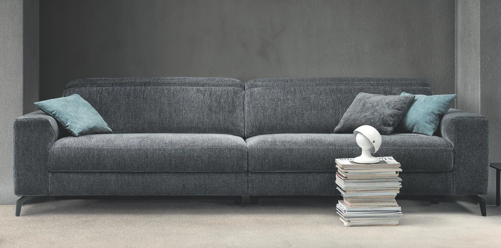 The Space Fly sofa – like the other models in the Relax collection – focuses on comfort, aesthetics, and innovation to fully meet contemporary needs. Its 24‑centimeter‑wide armrests provide comfortable forearm support, while the adjustable headrests deliver maximum comfort in every situation, for any activity.