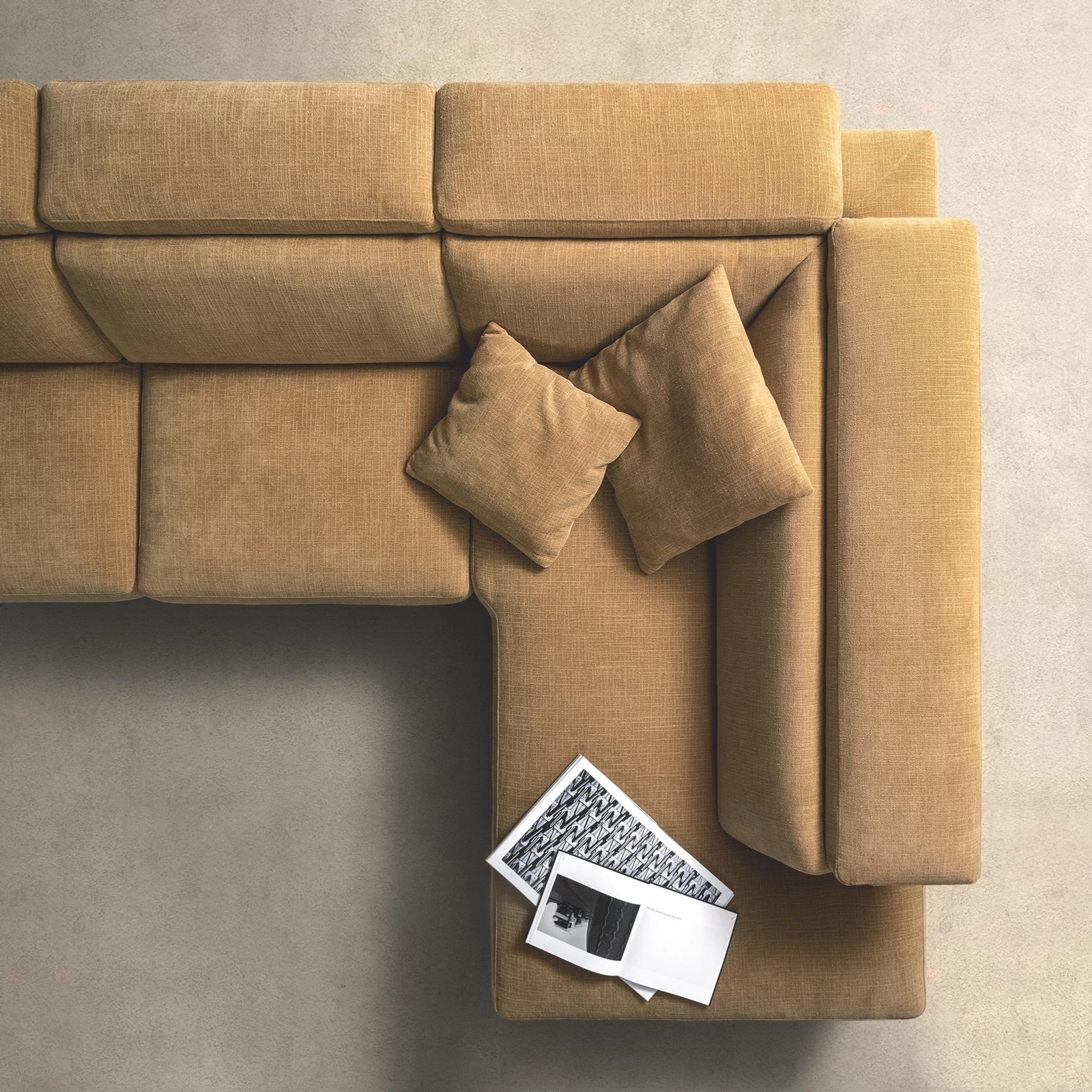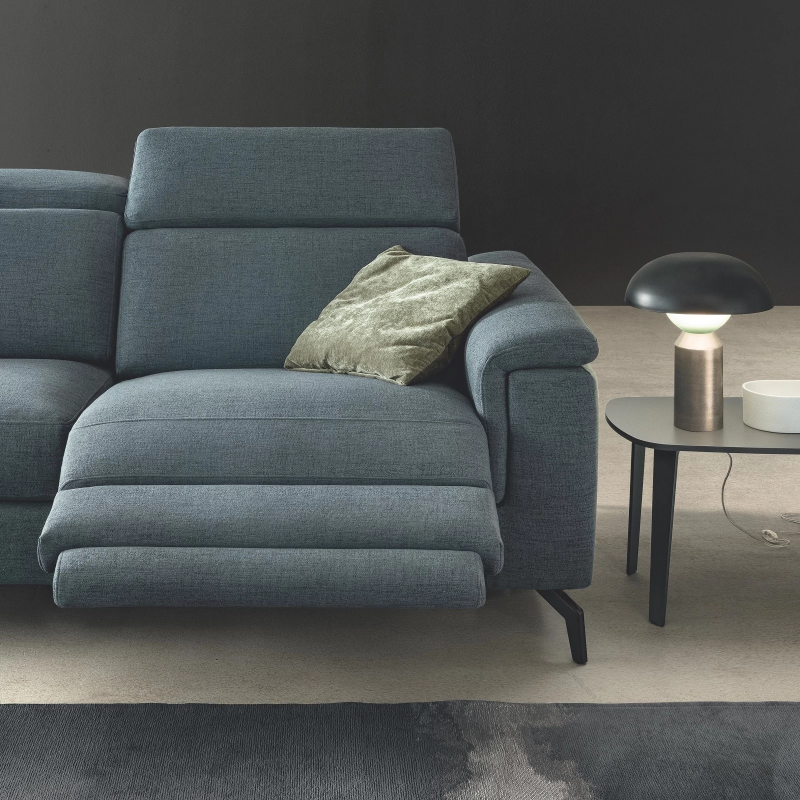 The Space Time sofa – like the other models in the Relax collection – focuses on comfort, aesthetics, and innovation to fully meet contemporary needs. The distinctive armrest design not only influences the look but also elevates comfort to a new level. The headrest, which offers comfortable support for head and neck, can be folded down, changing the sofa’s appearance: raised, it looks more classic; folded, it returns a more modern, youthful design.