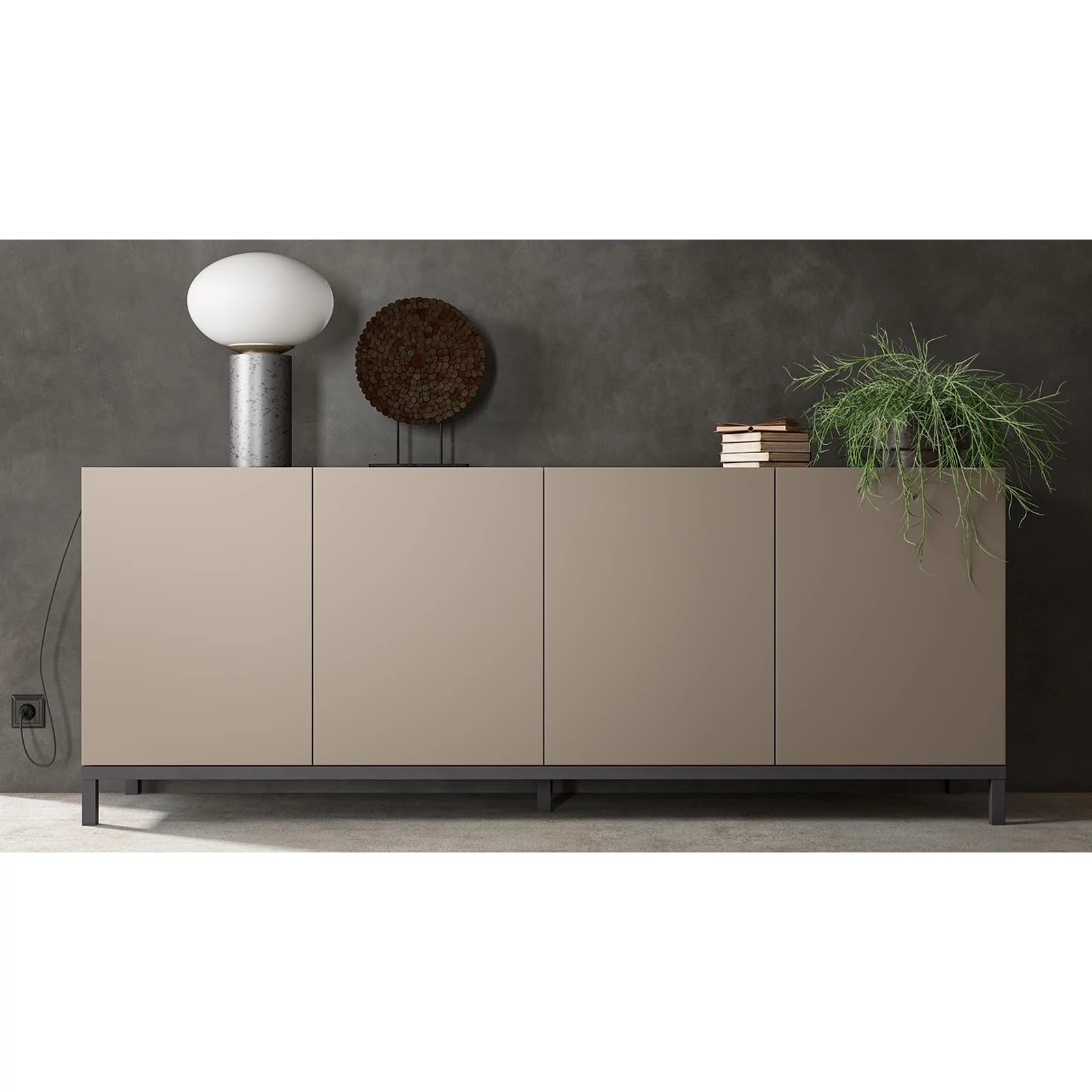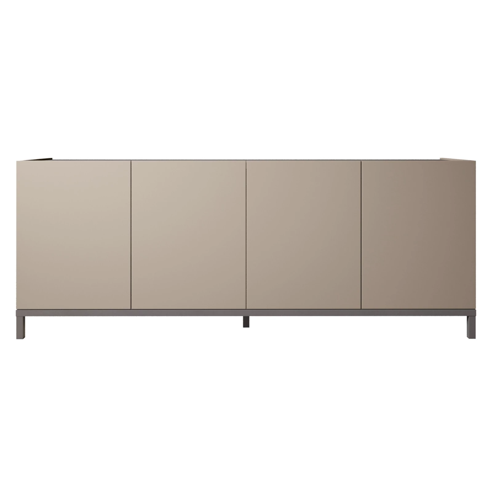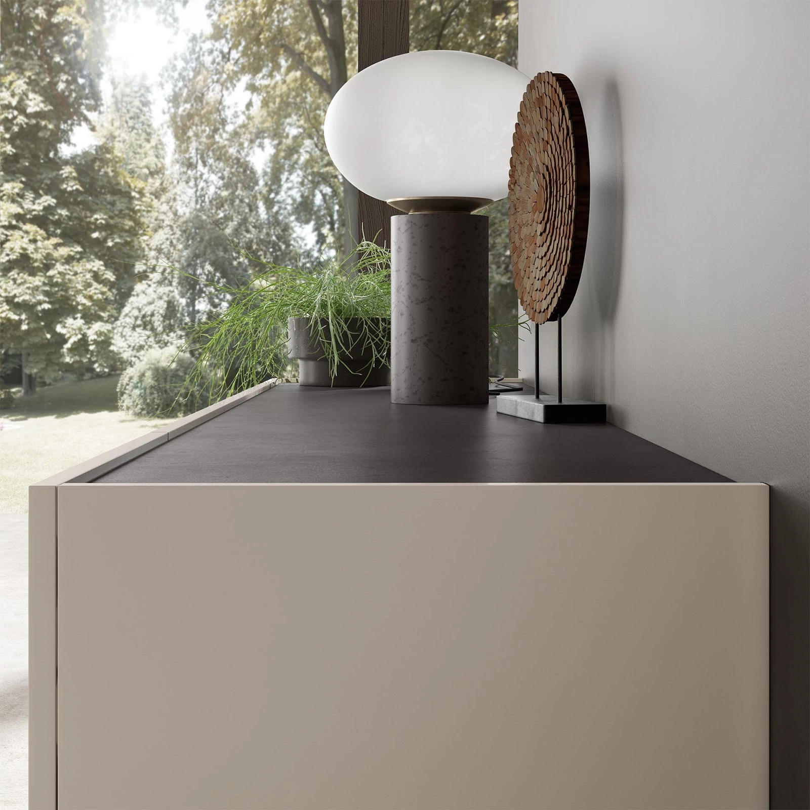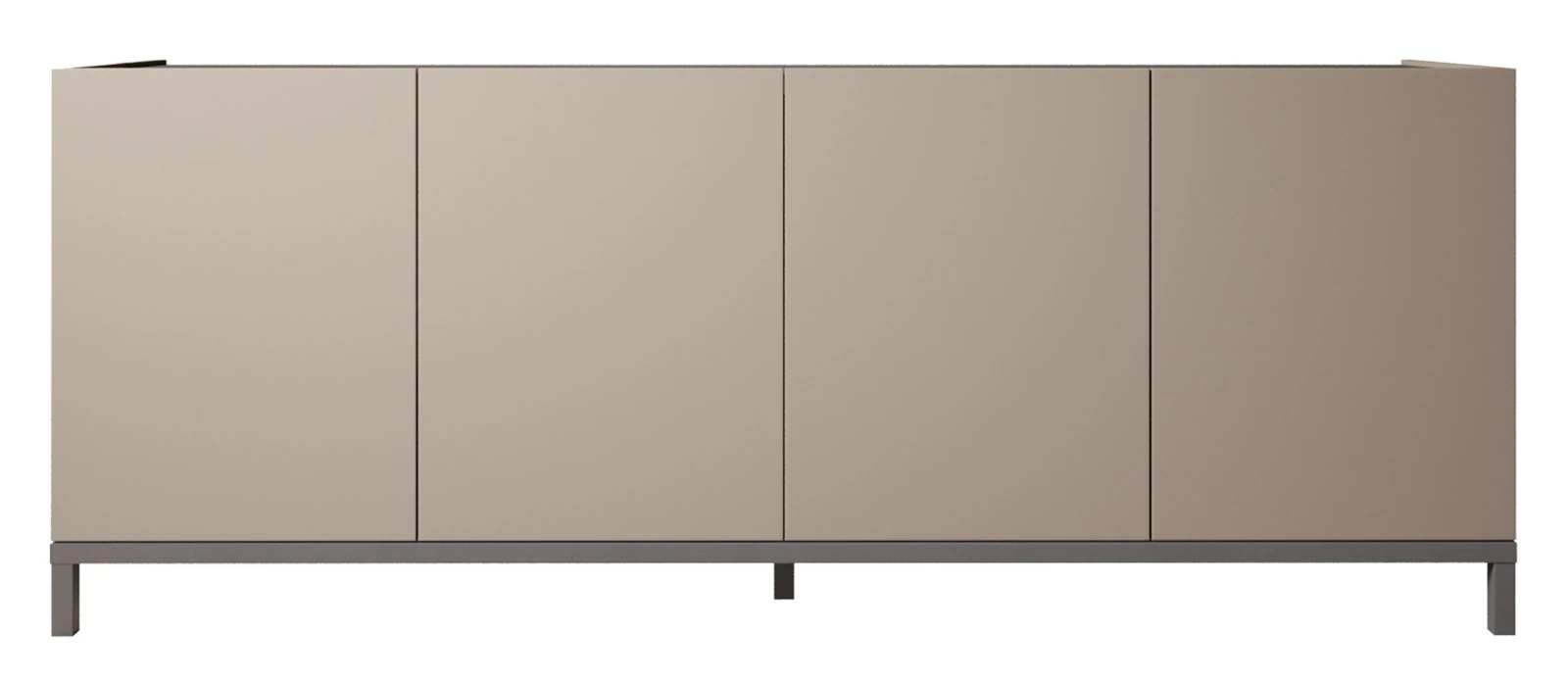 Cabinets, which also have a solid material and a clear, dark glass part, could not be more chic. The anthracite grey structure of the chairs is contrasted by the sand-colored leather. A coffee table with a sensual design, which is also modern thanks to its metal structure. The perfect mixture of beauty and expedience. TV commode with fashionable colors, modern shape, in perfect size, spiced with a little technology. Careful and elegant geometric design, excellent solution for arranging open or close spaces as well.