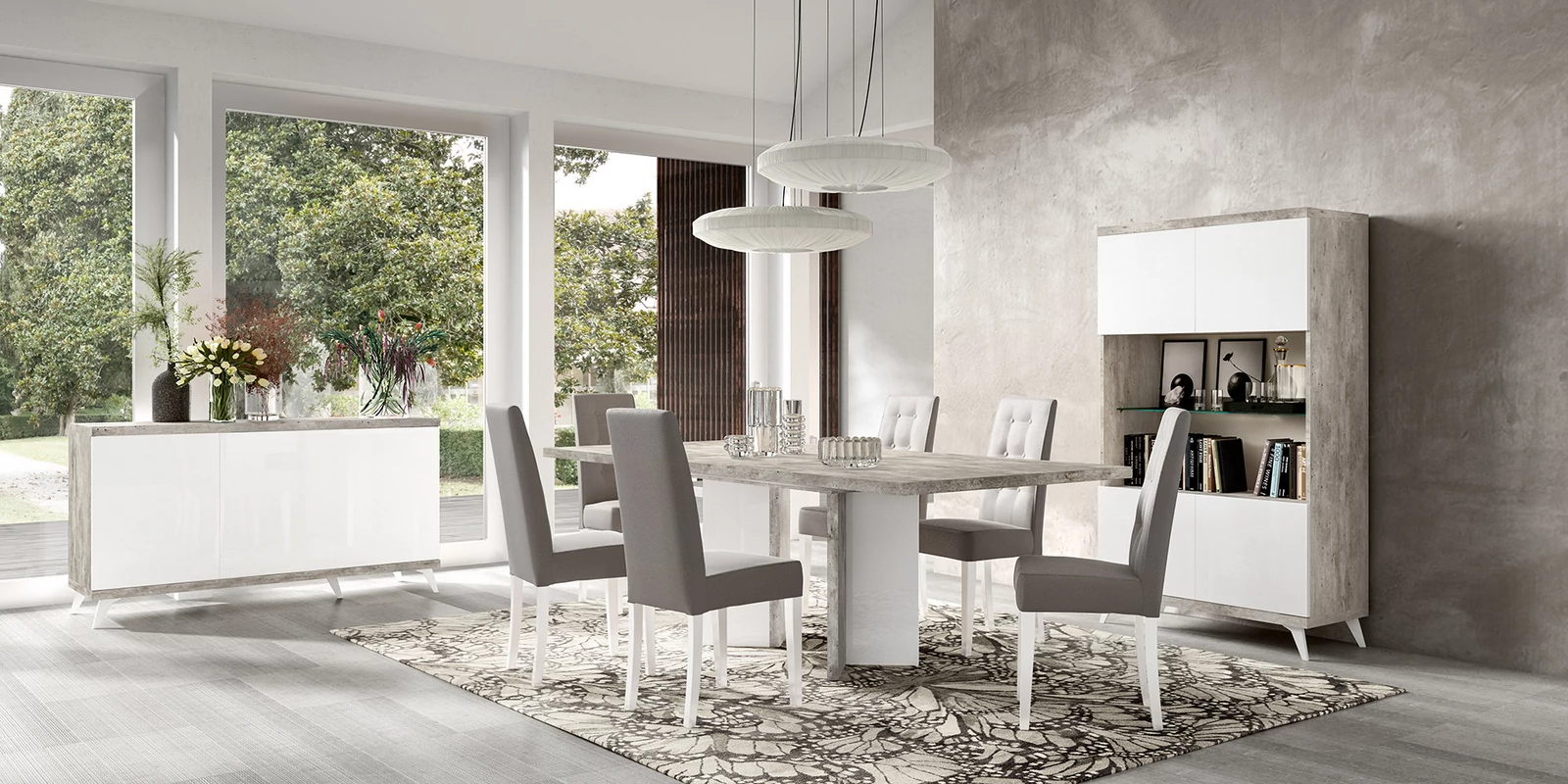 ST Treviso Day dining room - grey-white with 180x104 cm (+45 cm extendable) dining table