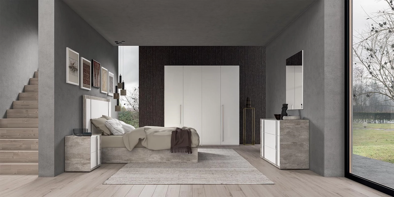 ST Treviso bedroom - grey-white with 154x203 cm bed, with 4-doors cabinet