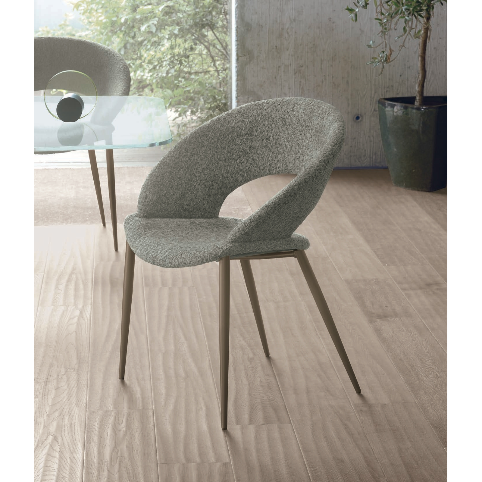 The Rachele chair stands out with its softly curved backrest, designed for ergonomic relaxation. The elegant distinction between the seat and backrest creates a unique and inviting silhouette. With its refined design and wide selection of upholstery, this modern Italian chair is an excellent choice for both homes and offices.
