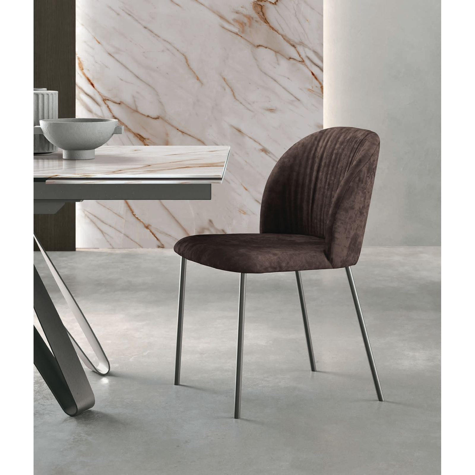 The Agata chair excels in comfort: its padded, ultra-soft seat rests on slim metal legs, giving the chair a light yet confident character. With its understated elegance, it complements more traditional dining spaces as well. A modern Italian upholstered chair, available in a wide range of fabrics and leathers.