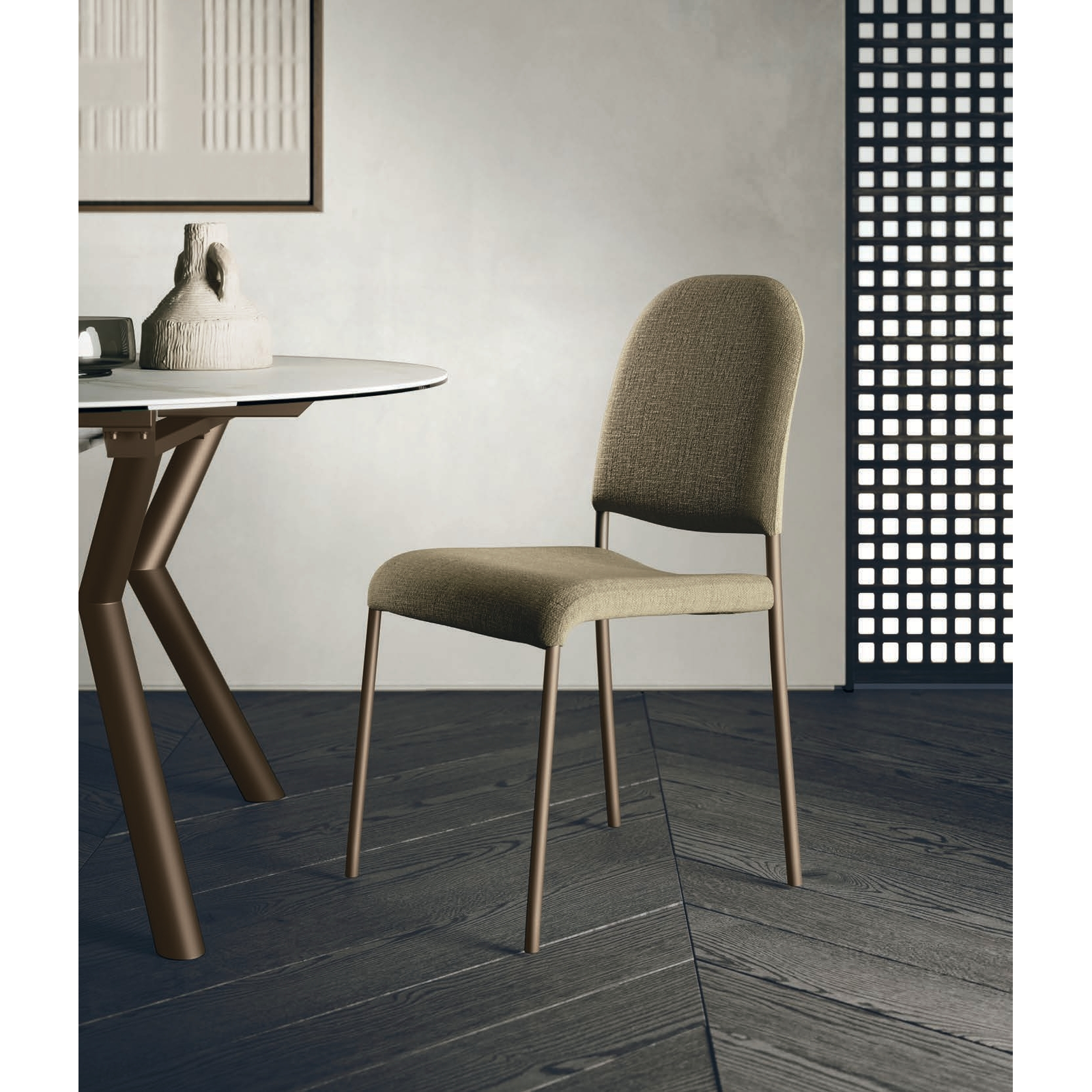 The Gilda chair is compact and sturdy, ideal next to a dining table or desk. Versatile and practical with its removable cover for easy maintenance, and with a wide fabric selection it embodies a modern upholstered chair with Italian quality.
