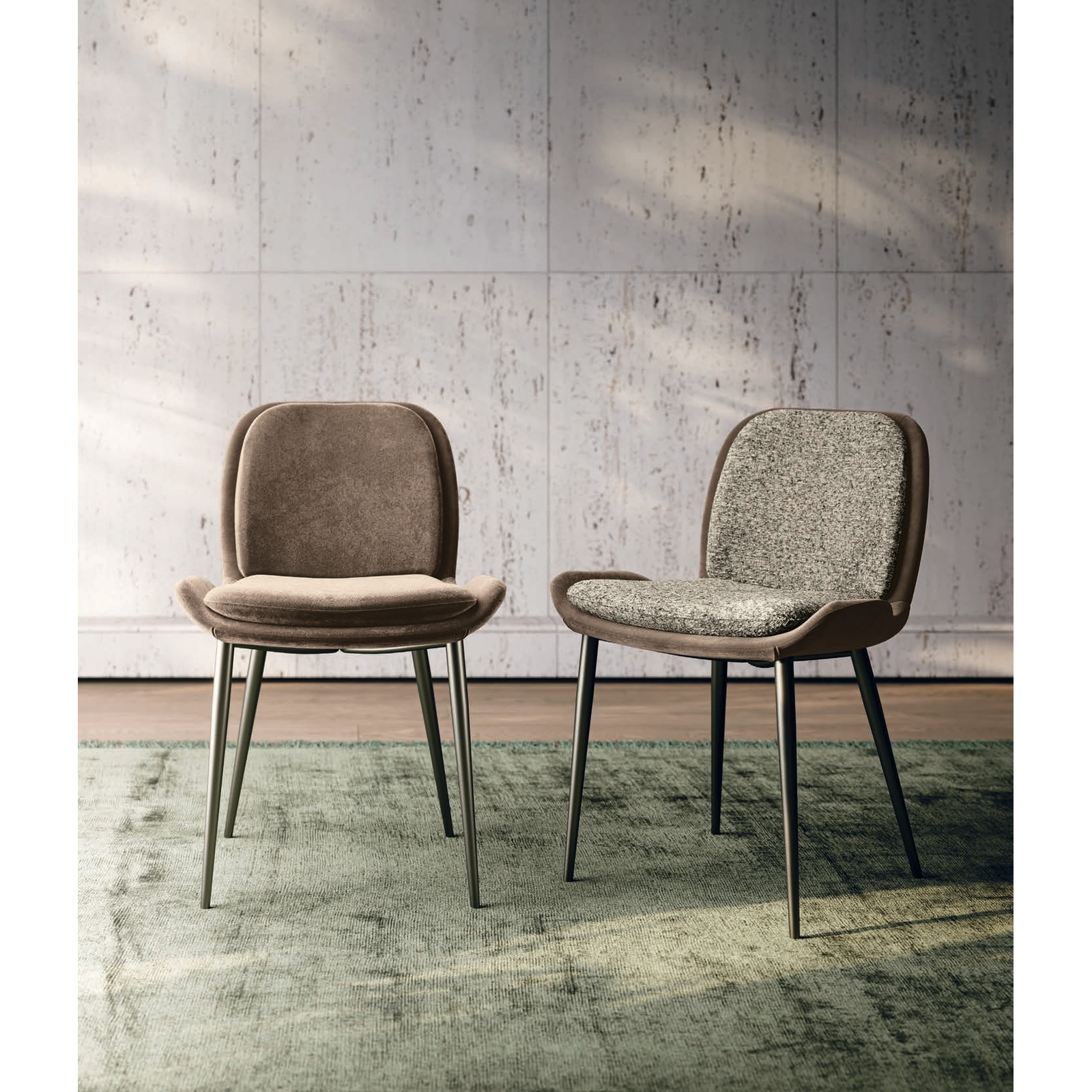 The Mia chair stands out with its removable cushioning paired with a coated plywood shell, blending refined design with exquisite craftsmanship. The harmony of materials and shapes is consistent across the available color combinations, lending a modern Italian character to this upholstered chair that feels at home in many interiors.
