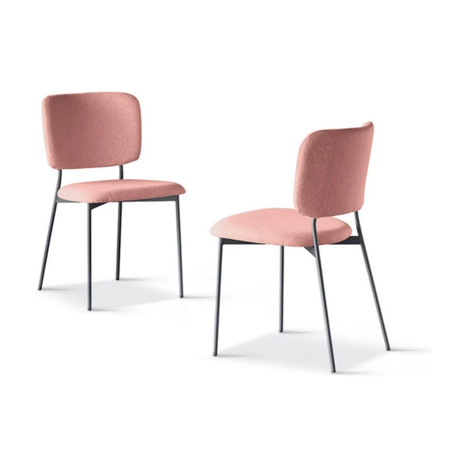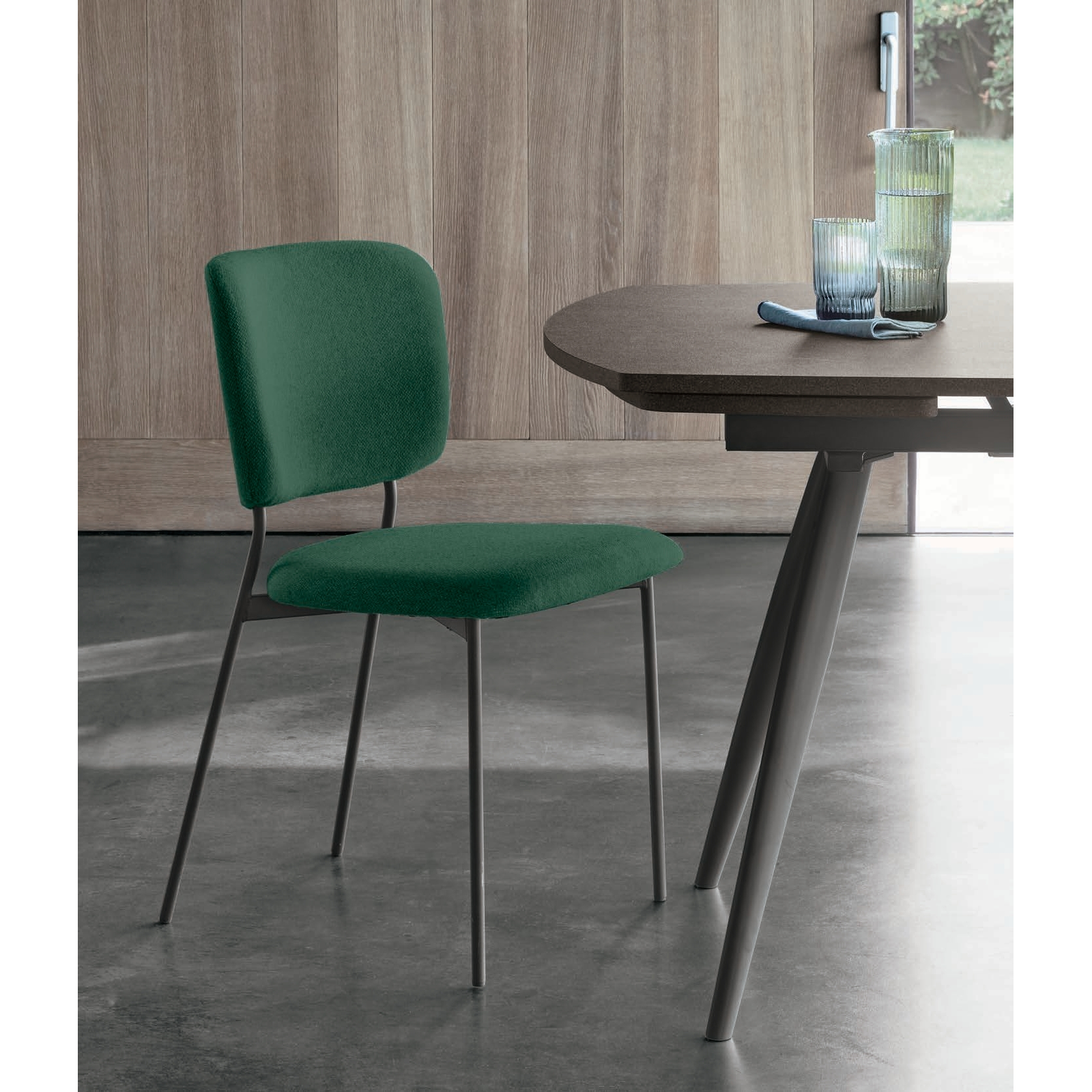 The Susan chair reinterprets the traditional chair form with a modern approach. Four slender metal legs support the generous seat and the embracing backrest, both padded, which can be customized through a wide selection of fabrics.