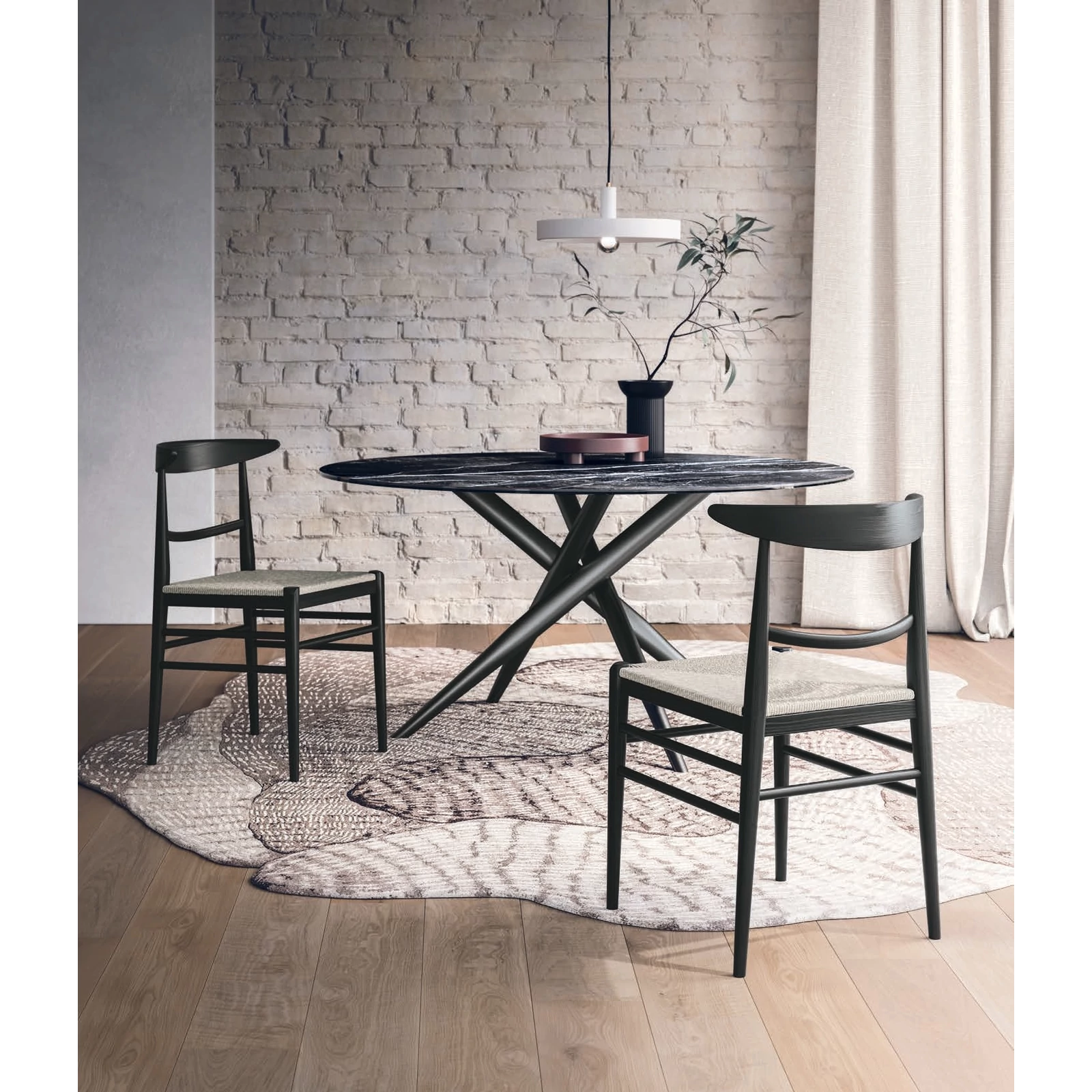 The Louis chair draws inspiration from styles of the past, yet it exudes a comforting, familiar, and homely character. Its clean lines and sturdy yet graceful legs embody high-quality Italian aesthetics, while the upholstery, available in a wide range of fabrics, allows it to blend seamlessly into various interiors. In addition to traditional fabrics and leathers, it is also available with a straw seat, which beautifully highlights the rustic elegance of the Louis chair.