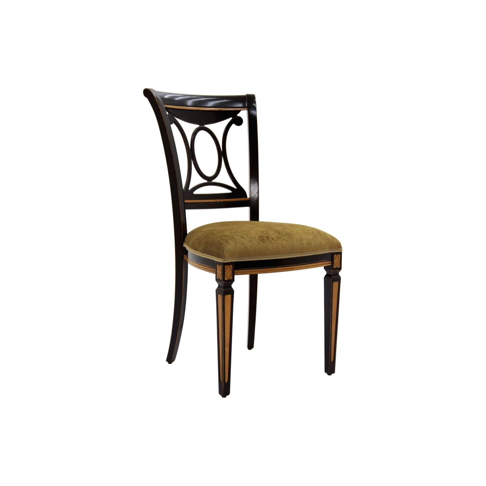 A Livia étkezőszék egy klasszikus olasz bútordarab, amely letisztult eleganciájával és időtálló formatervezésével minden étkezőbe különleges hangulatot varázsol. A háttámla kecses íve és a geometrikus, ovális betét díszítés nemcsak dekoratív, hanem ergonomikus is. A két tónusú sötét bicolor felületkezelés (BS – cat. ZF) tökéletesen harmonizál az arany árnyalatú díszítőelemekkel, melyek kifinomult megjelenést kölcsönöznek a széknek.