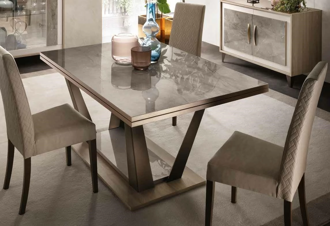 Ambra is the new Collection of the brand Adora, that includes furnishing elements for your living room, dining room and bedroom. Once again, Adora has left its unmistakable hallmark on furniture items that fly the flag for the prestige of Italian style and for the Italian flair for furniture with elegance and an inimitable contemporary flavour. The contrasting textures and the dissimilar volume effects between the different surfaces are sophisticated details that do not remain unnoticed and give character to each single furniture element. The structure of the furniture items in elm-wood finish forms an elegant contrast with the textured, open-pored doors, which are overlaid with marble-finish panels. Furnishing solutions with stylish, elegant silhouettes repeat the same contrasting effect that is enhanced by the satin-finish bronze profiles of the handles and feet. Another feature worth noting is the balance of delicate shades that add their own touch of elegance to each piece, with bright reflections from mirrored glass that, like a jewel, give luminosity to the whole furniture composition.